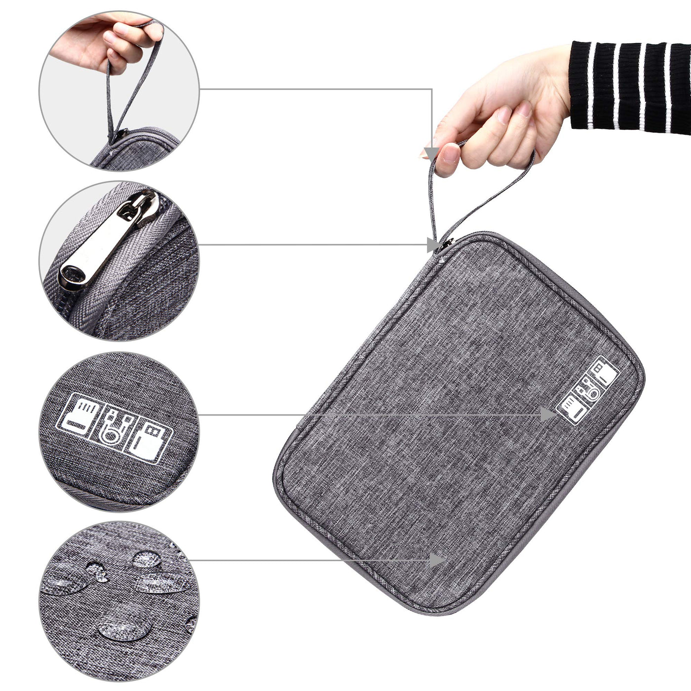 - [Well Organized & Protected] -- This versatile electronic organizer bag is specifically designed for digital accessories storage. It keeps everything well organized and tidy in no mess. Quickly find what you want without searching all over the place. Water-resistant cationic fabric surface prevents from water and ensures the safety of your cords, cables, etc. A great accessory organizer bag for travel,business trip ,work, school and daily use.