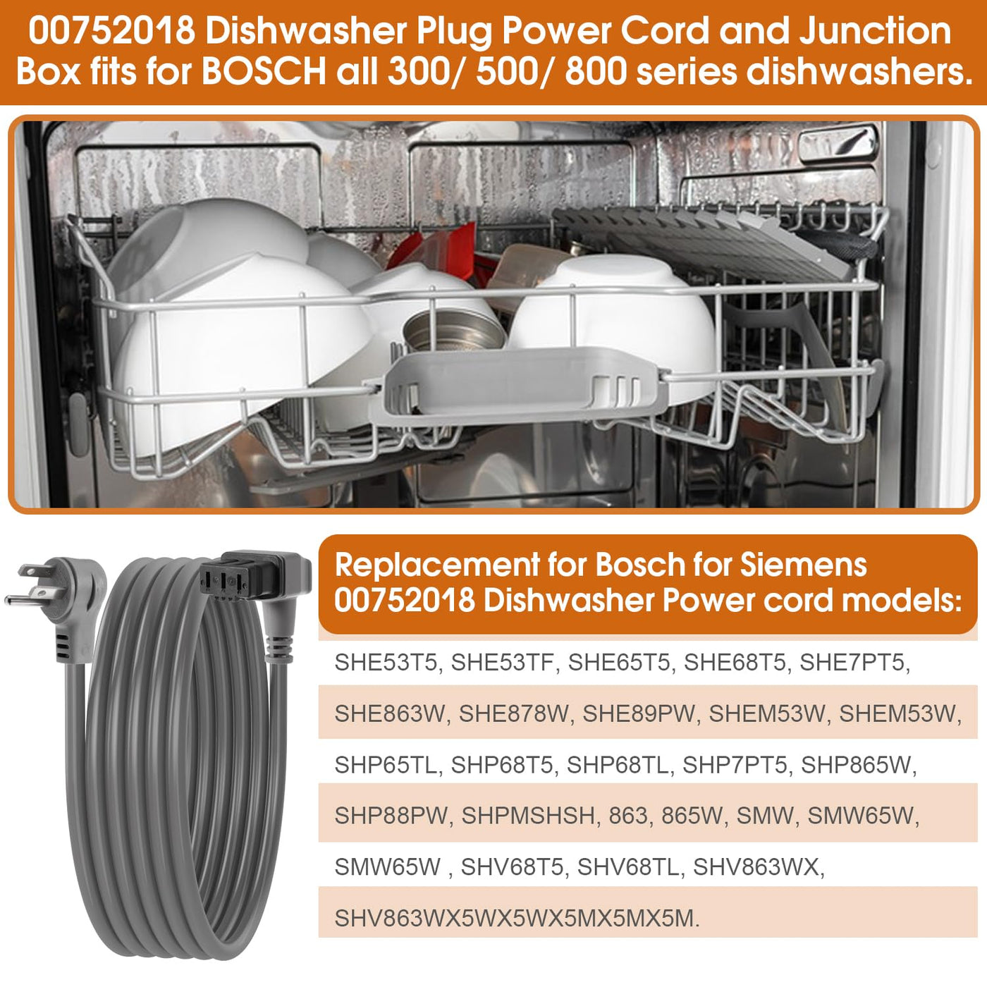 - Fitment: 00752018 Dishwasher Plug Power Cord and Junction Box fits for BOSCH all 300/ 500/ 800 series dishwashers.