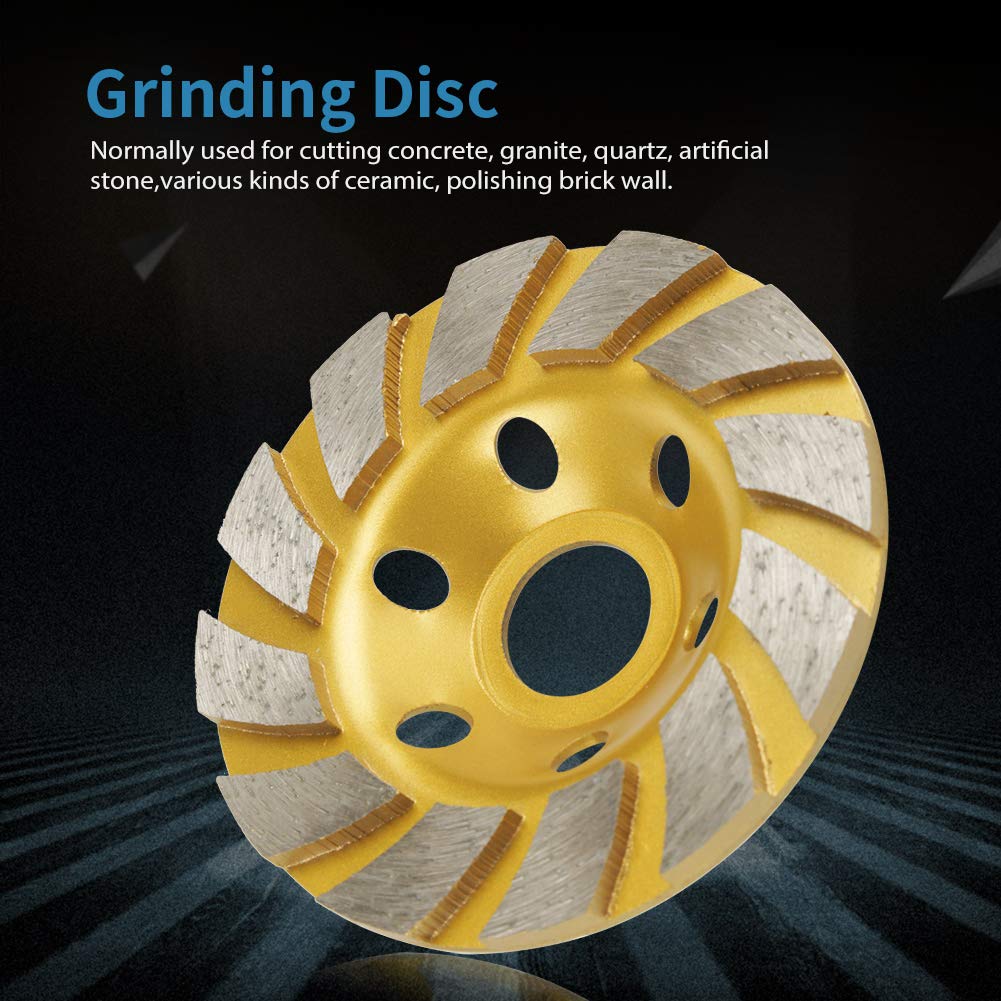 Functions: This segment grinding wheel uses diamond as an abrasive for good grinding effect. It has an outer diameter of 100 mm and an inner diameter of 22.23 mm, which is suitable for many sanders. The thickness is 4.5 mm, which ensures durability and long service life. With air holes to support and maintain a cool, stable cutting pattern and reduced wear. Widely used for grinding concrete, marble and many other stone materials. Specification: Abrasive: diamond. Grit: 100 Outer diameter: 100 mm. Inner diameter: 22.23 mm. Thickness: 4.5 mm. Maximum linear speed: 40 RPM Quantity: 1 Weight: approx. 199 g. Package list: 1 x grinding wheel. 1 x seal.