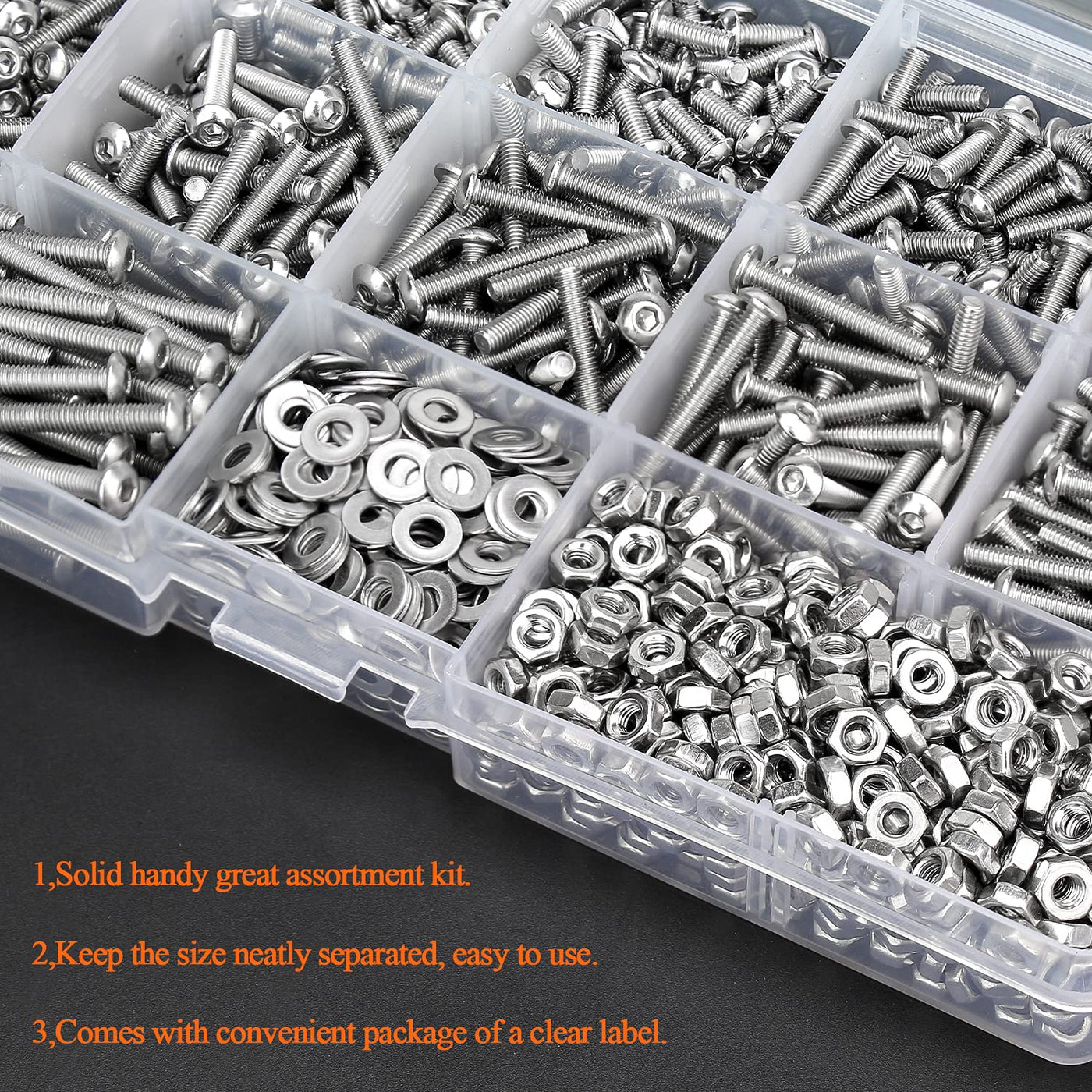 - Package1280 pieces in total, packed in a durable transparent box with label. It is easy to distinguish the size of the product, when you want to use a certain screw, you don't have to waste time buying it separately, you can choose the suitable one to meet all your needs.