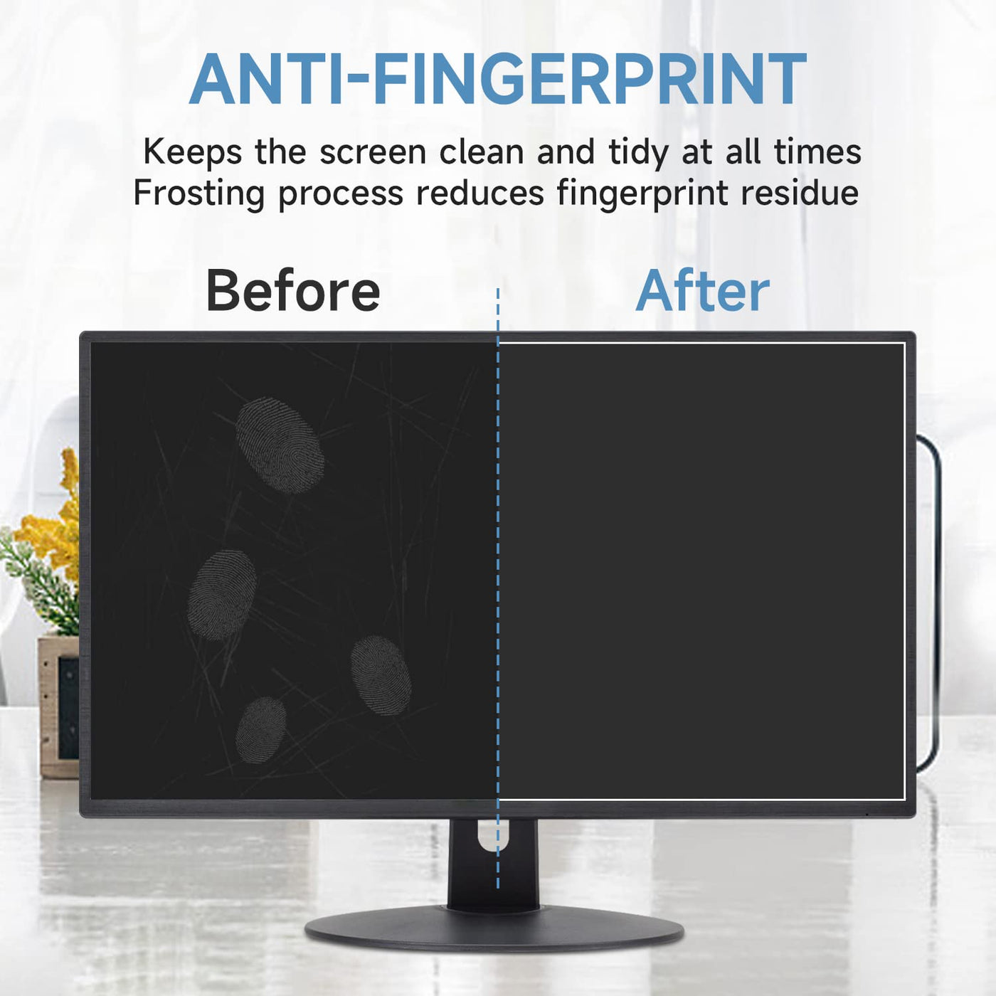 - Upgraded Anti-Glare Feature: ANTOGOO V 21.5 inch anti glare screen protector Made from superior quality 5-layers film engineered to reduce glare and resist fingerprints/smudges. Not only protect your eyes from glare, keep your computer screen clean.