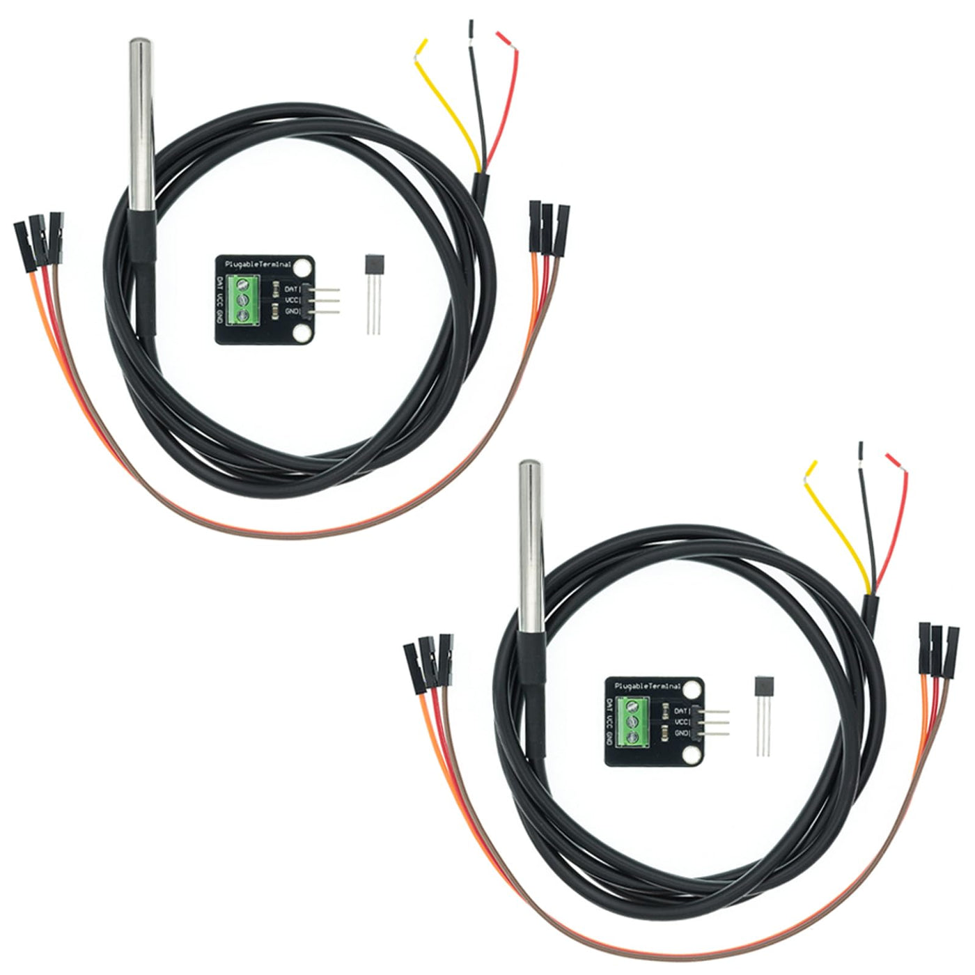 - What You Get: 2 set temperature sensor module kit (temperature sensor, pluggable terminal adapter, 3pin cable) and 2 pcs direct insertion temperature sensor chip.