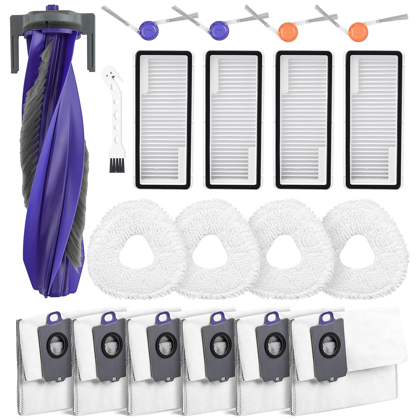 20 Pcs Accessories kit for NARWAL Freo Z10 Ultra/NARWAL Freo Z10 Robot Vacuum Cleaner, 1 Main Roller Brush, 6 Dust Bags, 4 Hepa Filters, 4 Mop Pads, 4 Side Brushes, 1 Clean Tool