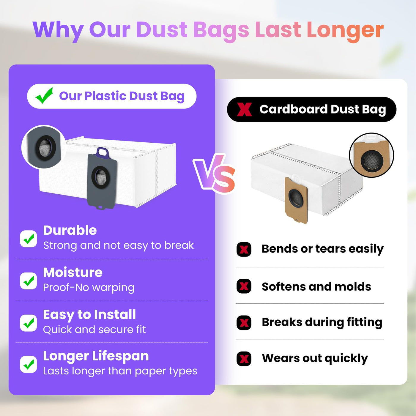 - SUPERIOR DURABLE MATERIALS: Our main brush features anti-tangle rubber fins paired with reinforced nylon bristles, effectively capturing debris while resisting hair wrap. Side brushes utilize flexible TPU tips to prevent scratching delicate floors. All components are crafted from wear-resistant materials to extend their service life. Durability meets efficiency in every component.