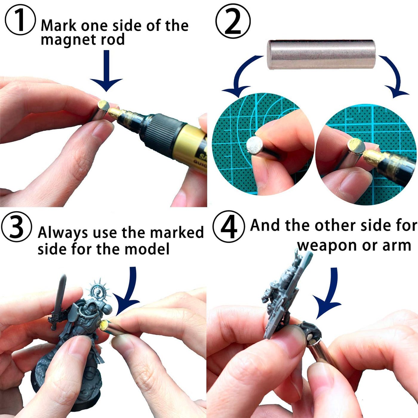 - Come with a Rod Magnet: To help control and put the small magnet into your miniature models. You can mark the magnet rod to show which side is for the weapons, and which side for the model. Would ensure you don't accidentally get your polarization wrong.