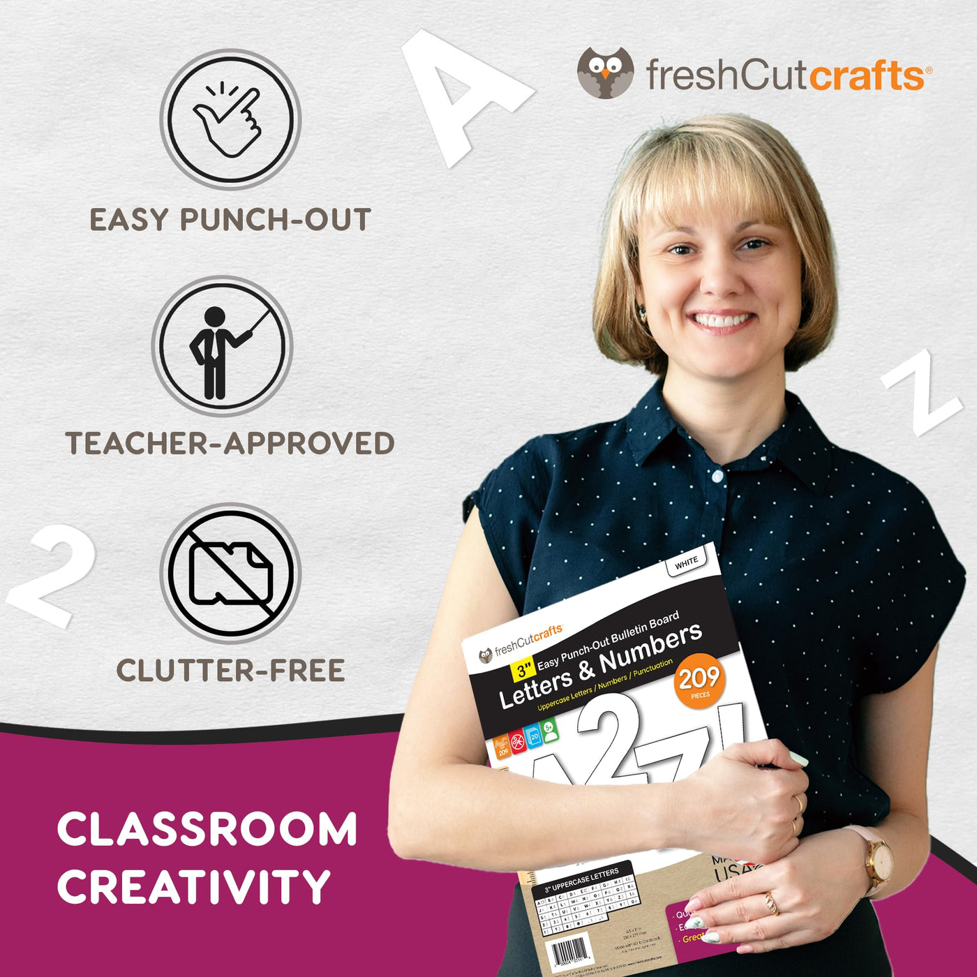 209 Pcs 3 in. White Bulletin Board Letters & Numbers, Capital Letters, Numbers, Punctuation, US Made Card Stock Punch Out Letters for Poster, Bulletin Board, Classroom - Precut Letters & Numbers