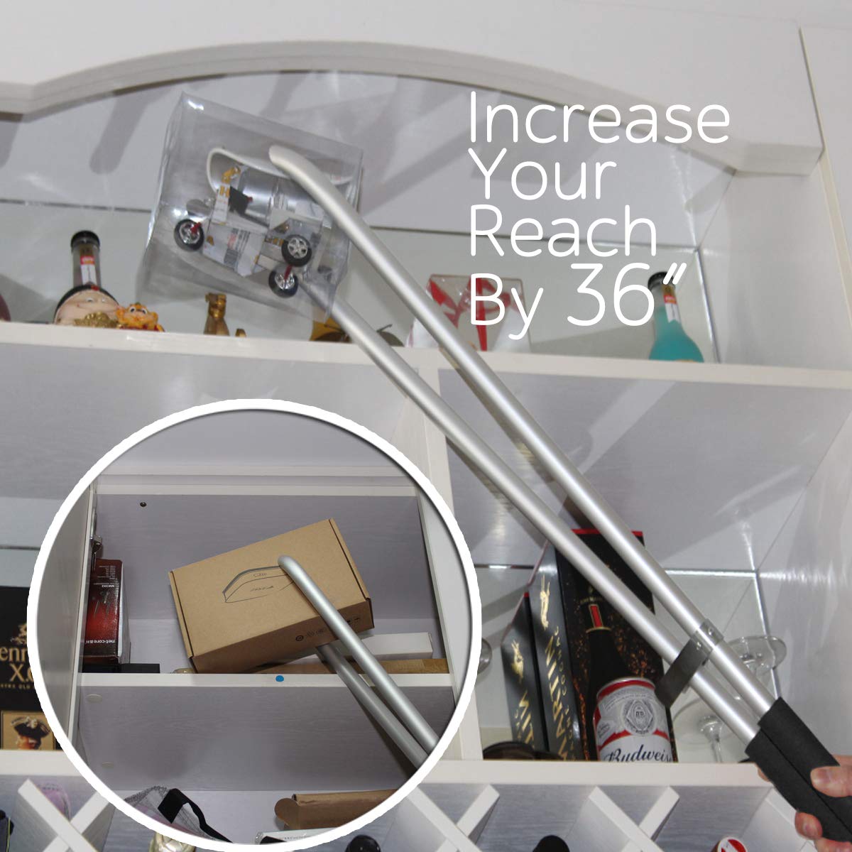 • 36" LONG GRABBER - Increases your reach by 36 inches. This grabber is useful for reaching items stored on high shelves without a stool or ladder or low without bending.