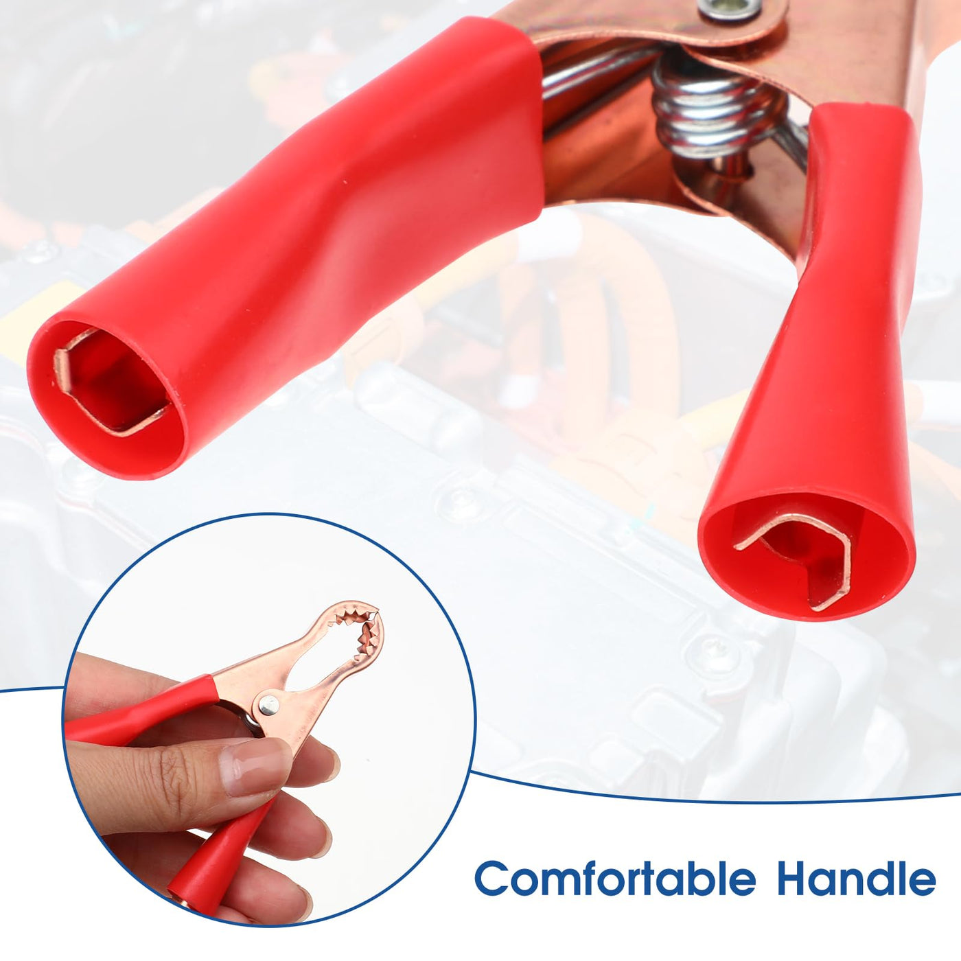 - Secure Clamping: Equipped with strong springs and a tine design on the clamps' heads, jumper cable clamps offer stable and secure connections to car batteries, voltage testers, and other electrical equipment.