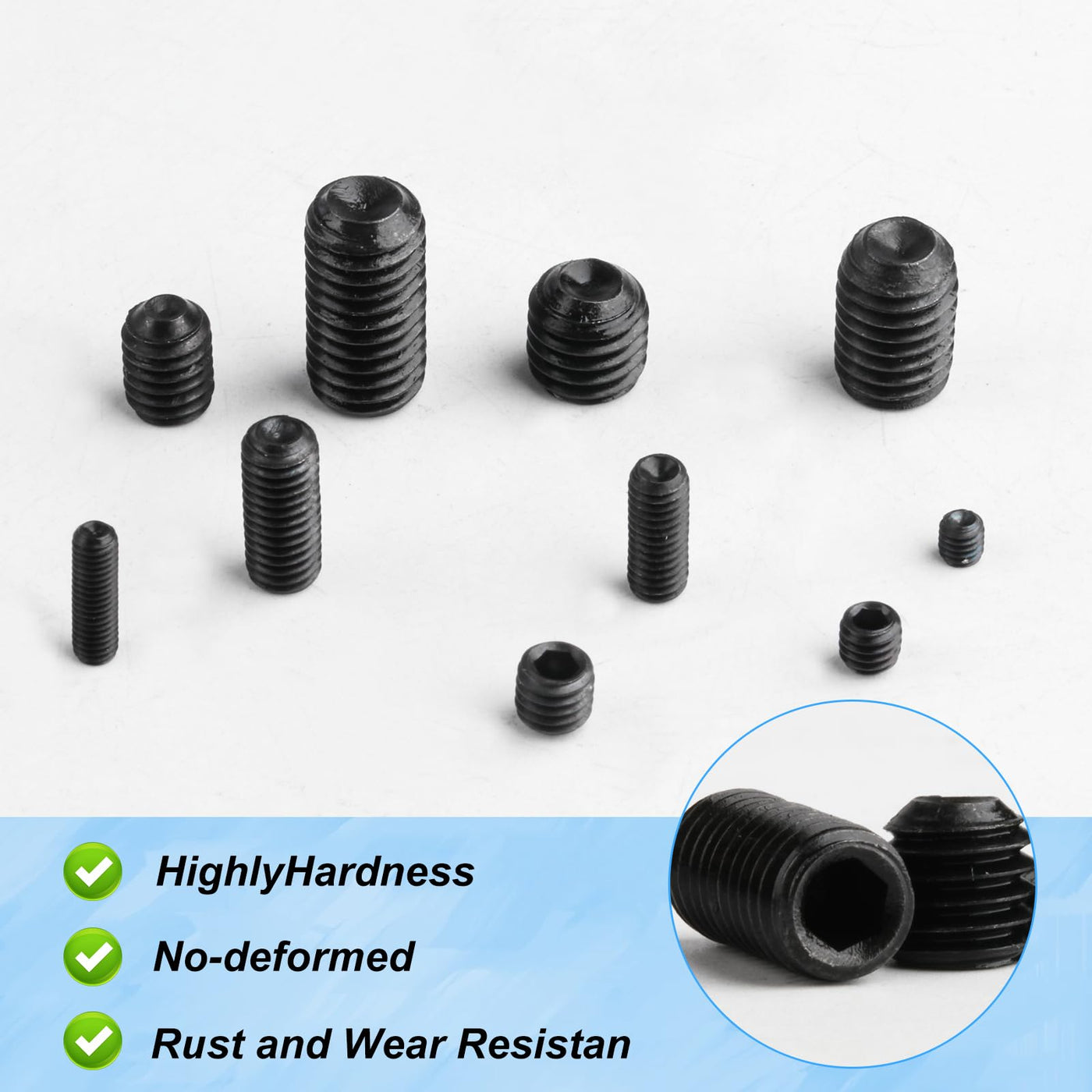 - Premium Material: All allen set screws are made of superior carbon steel material, which has excellent rust, oxidation and corrosion resistance properties, not easy to break, and ensures long service life.