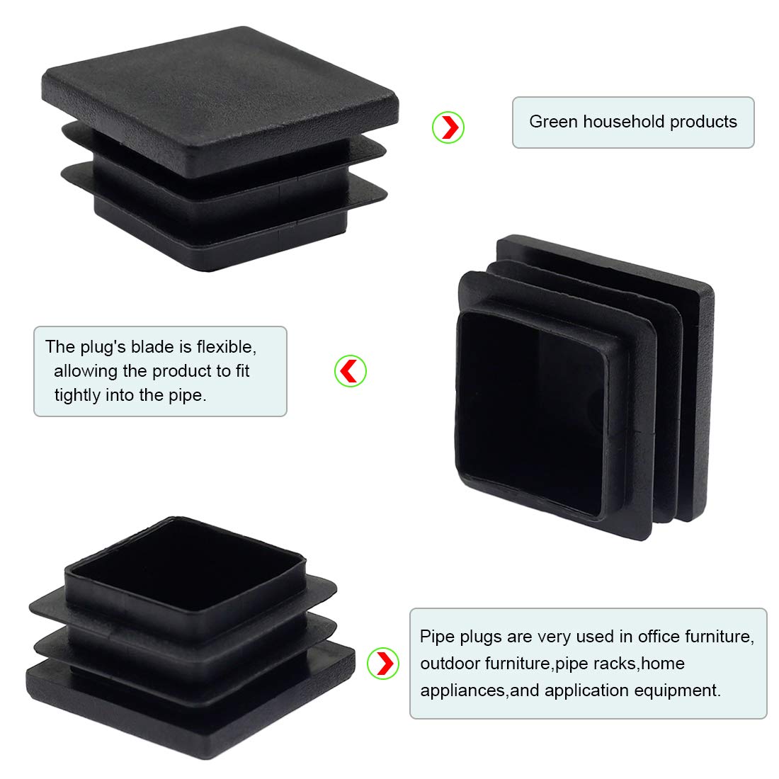 - Application: Easy to install snap-in plugs, provides long lasting protection while giving a finished sleek look for many small projects: chair glide floor protector, fitness equipment, fence post end caps, patio furniture leg tips, ect.