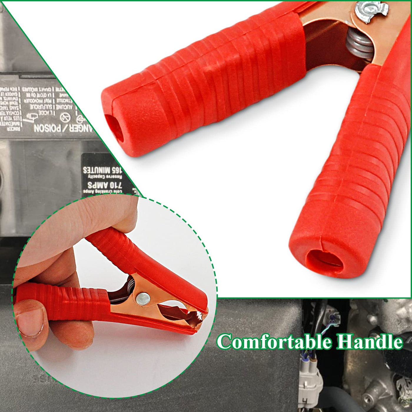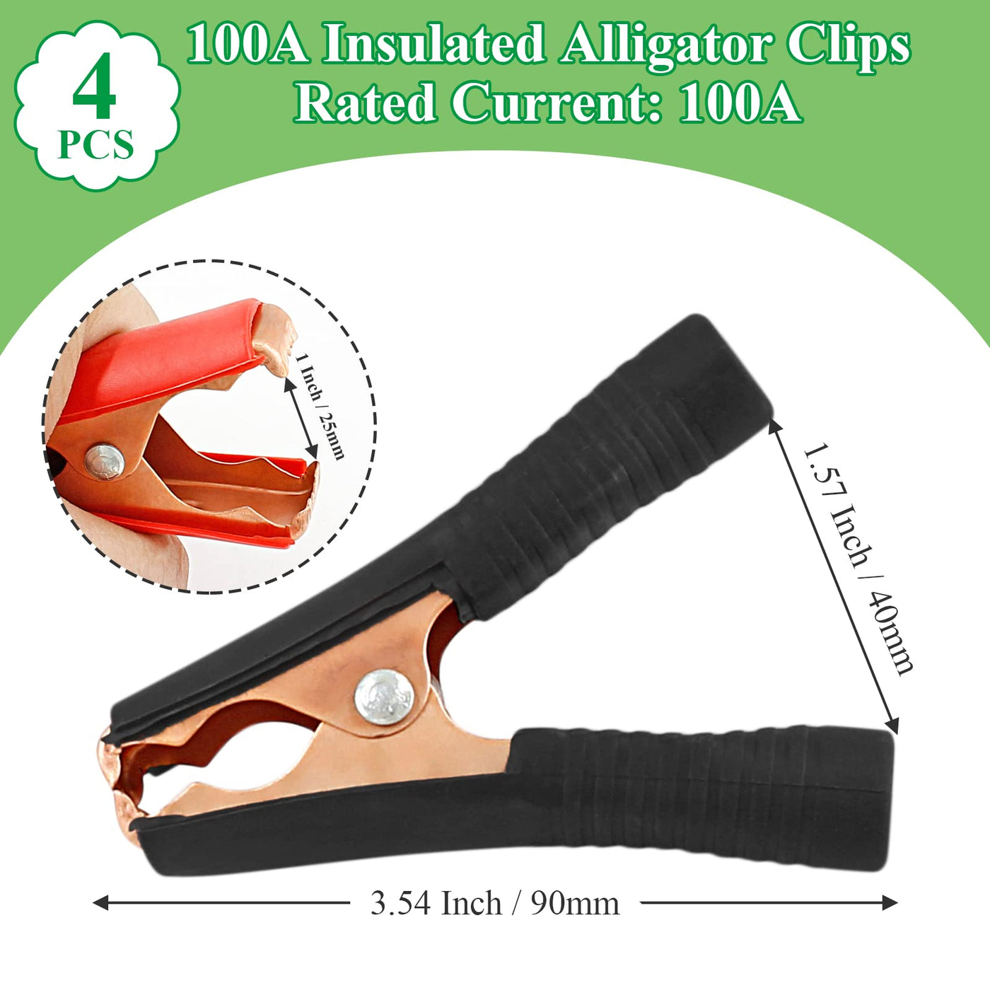 - Insulated Alligator Clips: The package contains 4 x insulated alligator clamps, each 2pcs in red & black, which makes it easy to distinguish between positive and negative poles. Rated current: 100A, size: 3.54" x 2.96" x 0.71" / 90 x 75 x 18mm (L*W*T)