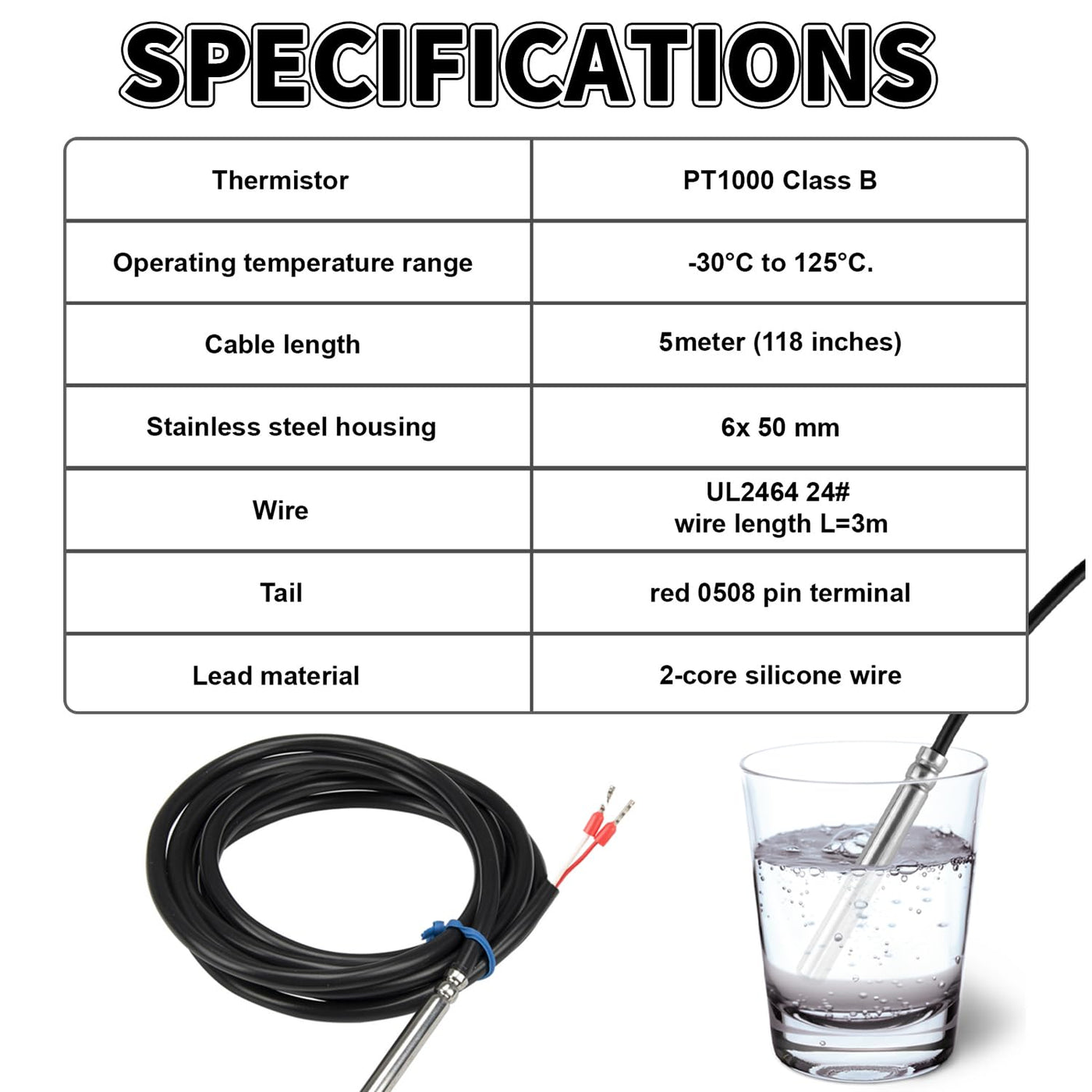 - Waterproof Sensor The temperature sensor uses a brand new original PT1000 temperature sensor chip, and each pin of the chip is separated by a heat shrinkable tube. It can effectively prevent short circuits and has good insulation and sealing properties.