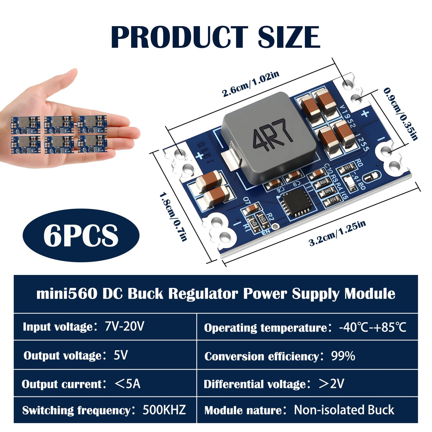 6 x DC-DC Step Down Converter, 5 V Output, Step Down Converter, Mini 560, High Efficiency and Stability, Voltage Regulator Adjustable, Suitable for Industrial Patch Use