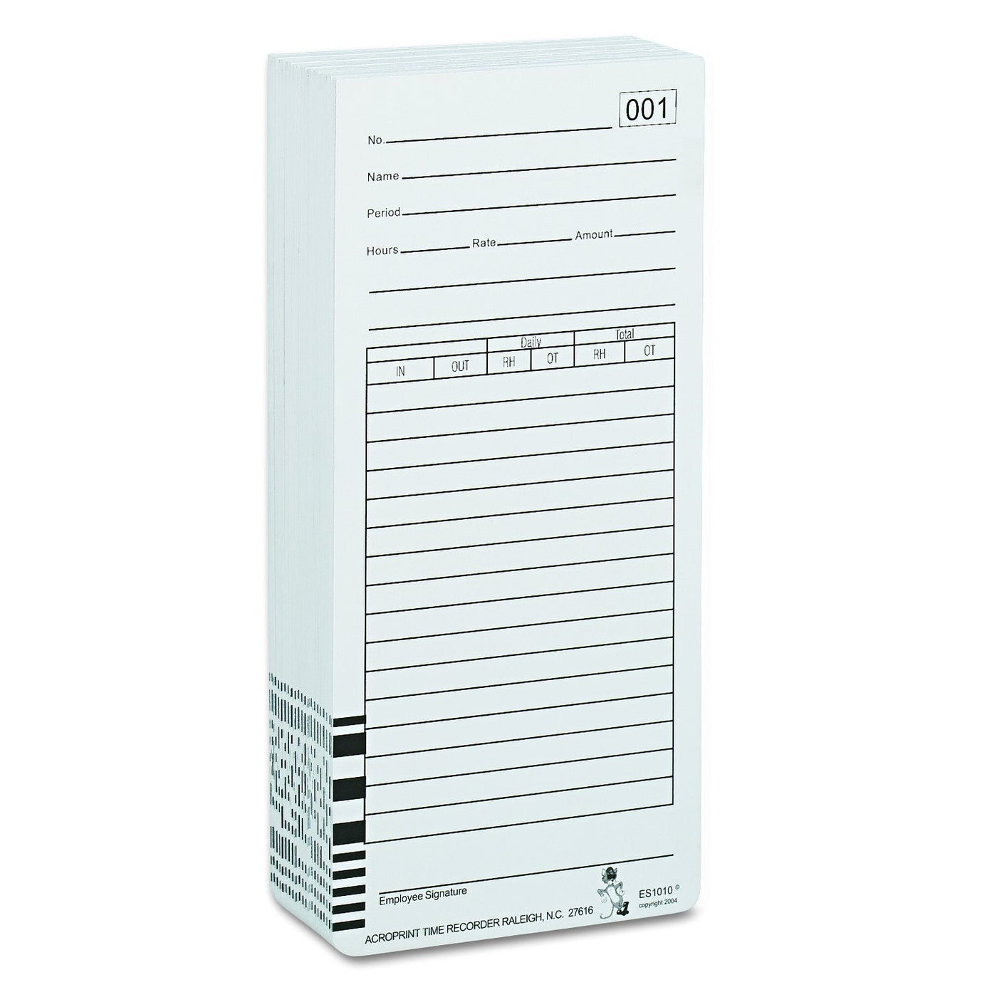 - Weekly time cards are designed for use with the Acroprint ES1000 Atomic Totalizing Payroll Recorder