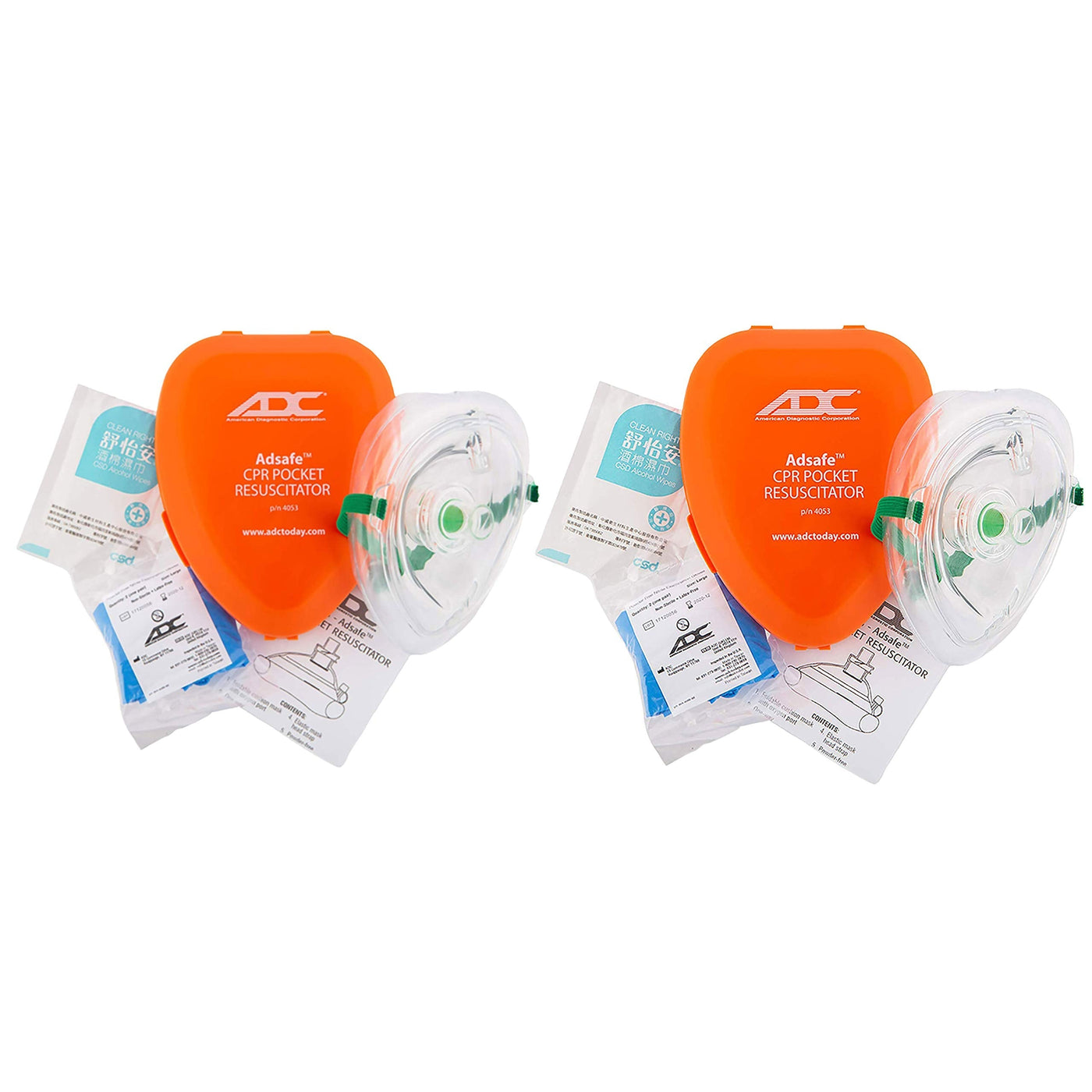 ADC Adsafe CPR Mask Pocket Resuscitator Kit with replaceable filter valve, disposable non-latex gloves, and alcohol wipe; 2 Kits - 4053-2 Set of 2