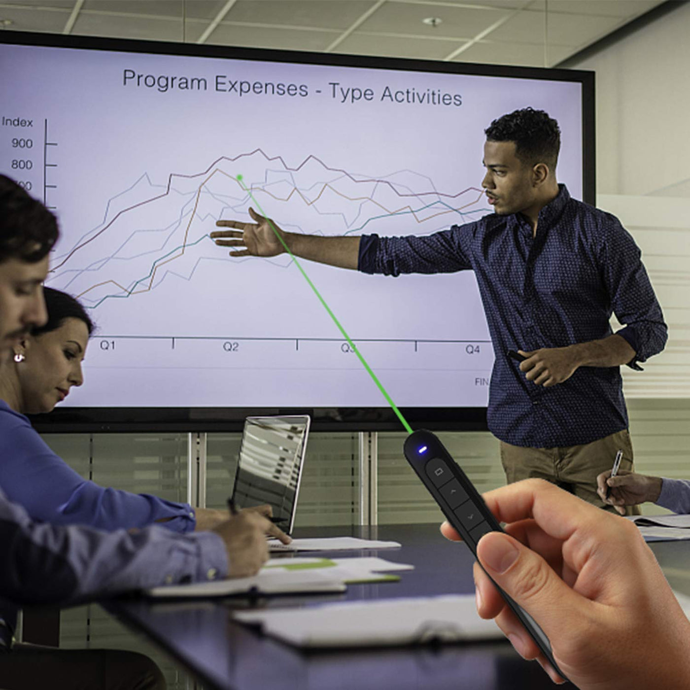 - Wireless presenter equipped with top-grade microchip, wireless control distance up to 39feet. The Green laser pointer is not only 10 times brighter than red laser, its also vibrant, easier to draw audiences attentions.(Not recommended to use on LED/LCD/TV)