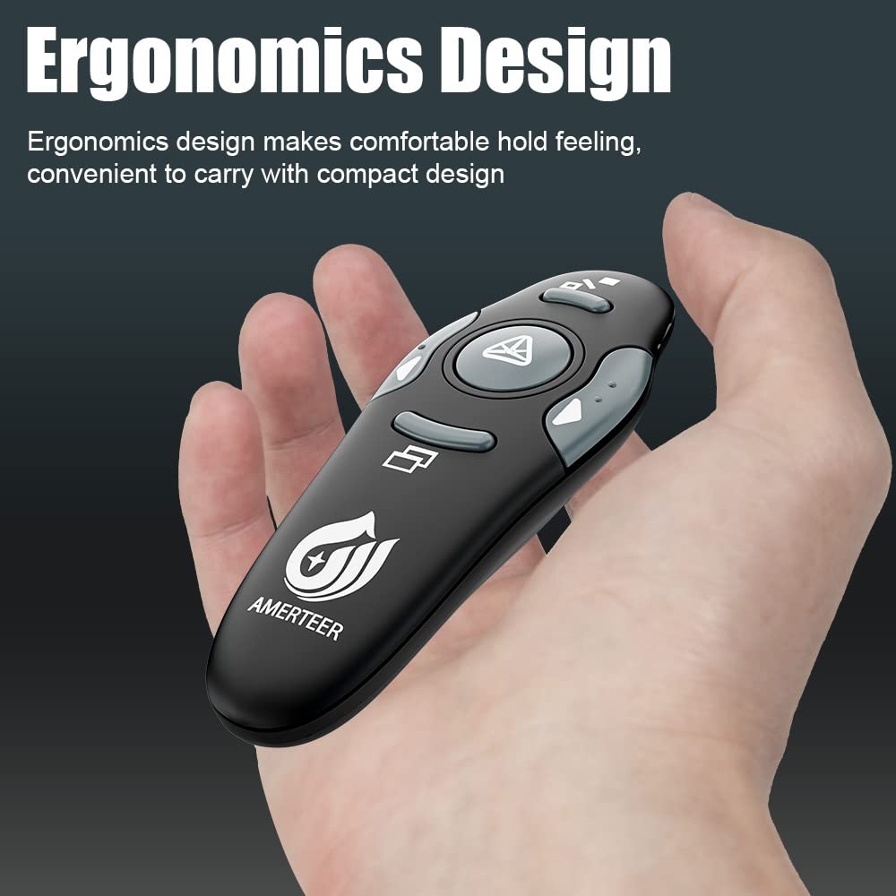 AMERTEER Wireless Presenter, PPT Controller Presentation Remote Control Laser Pointer USB Mouse Clicker Flip Pen