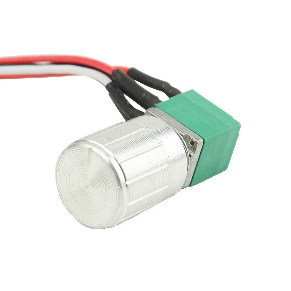 Features: The DC motor speed controller controls the speed of a DC motor by adjusting pulse width modulation. The product is suitable for self-restoring fuses, use a resettable 2A fuse to protect the controller. The current is too large and automatically disconnects, and the fuse is automatically restored after cooling. Potentiometer with switching function. Instruction manual: Make sure the power is off before trying to connect to the controller. Warning: do not change positive and negative electrical load. This bores the regulator. To change the motor rotation direction, replace the positive and negative poles of the engine. 1. See wiring diagram 2. Turn on the power supply and adjust the potentiometer. 3. LED shows the power and speed of the motor. Package includes: 2 x DC motor speed controller. Specification: (1) Operating voltage: DC1 .8V-15VDC. Control power: 30 W (maximum). Maximum continuous output current: 2 A. (4) Quiescent current: 0.015 A (standby state). (5) Duty cycle adjustable: 5%-100%, potentiometer with switching function. Frequency: 10 kHz. (7) Model: 1803BKW. (8) Case Size: 30mm x Width 24mm (without handle), Total Height 15mm (9) Net quantity: 0.015 kg. (10) With mounting screw hole, convenient to install and attach. (11) The maximum continuous output current: 2A. Weight: 16 g. Special Note: DC motor controller connected to DC power supply, not directly connected to 220V household voltage, otherwise damage at your own risk!