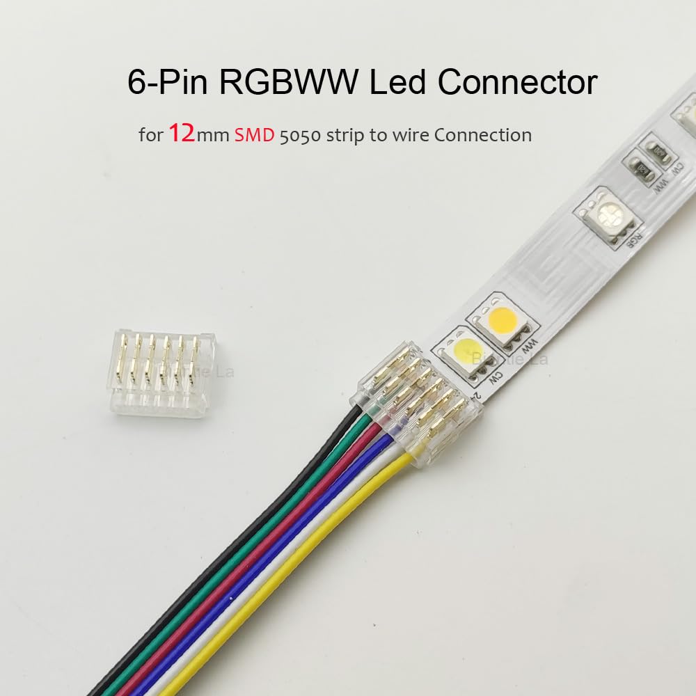 Biantie La RGBWW LED Strip Light Connectors - 6-Pin 12mm Solderless Clips for SMD 5050 Strip-to-Wire Joints (Pack of 20)