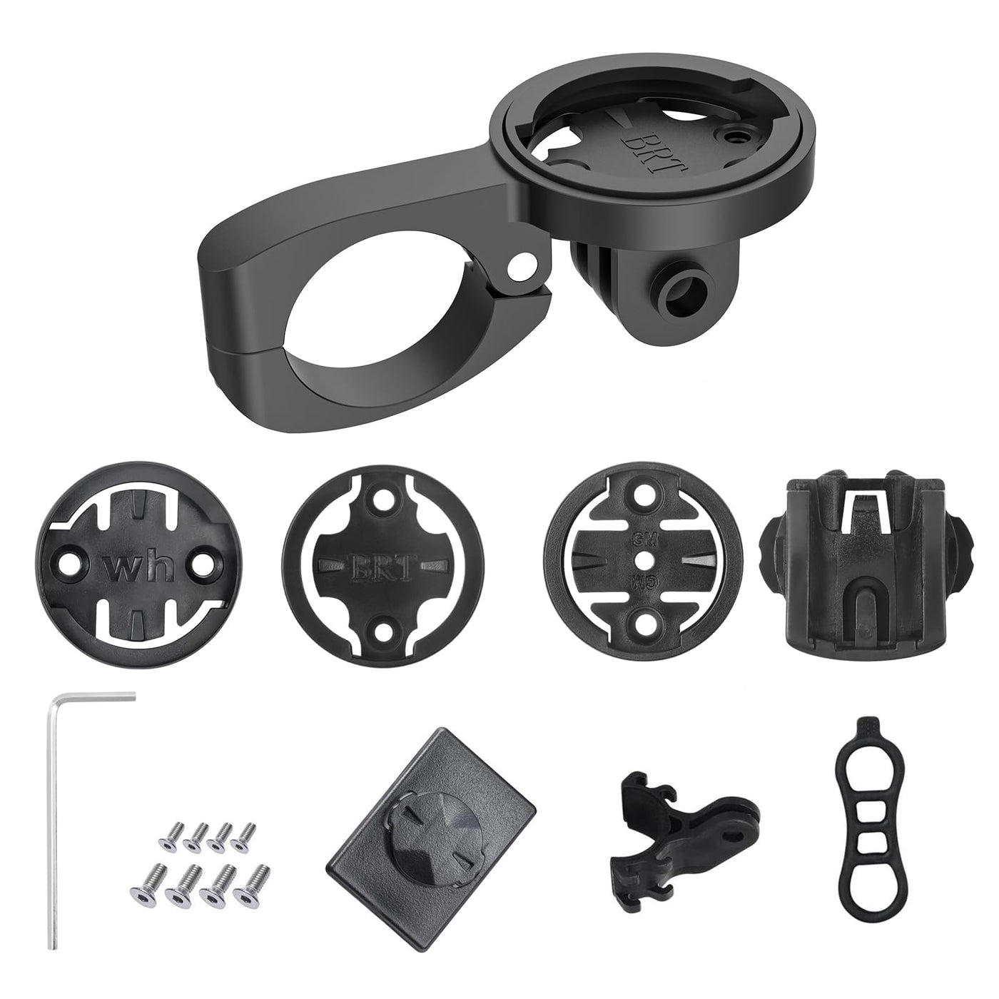 - WHAT YOU GET RICH COMBO: Aero bar garmin computer bike mount comes with gropo sports camera adapter, suit for garmin mount, compatible with gopro sport action camera and most of bryton mount, 4 replaceable heads computer mount adapters, four pairs screw, bike phone holder, fixed rubber band, wrench and light clip. And the elastic head light clamp can hold most type of flash lights.