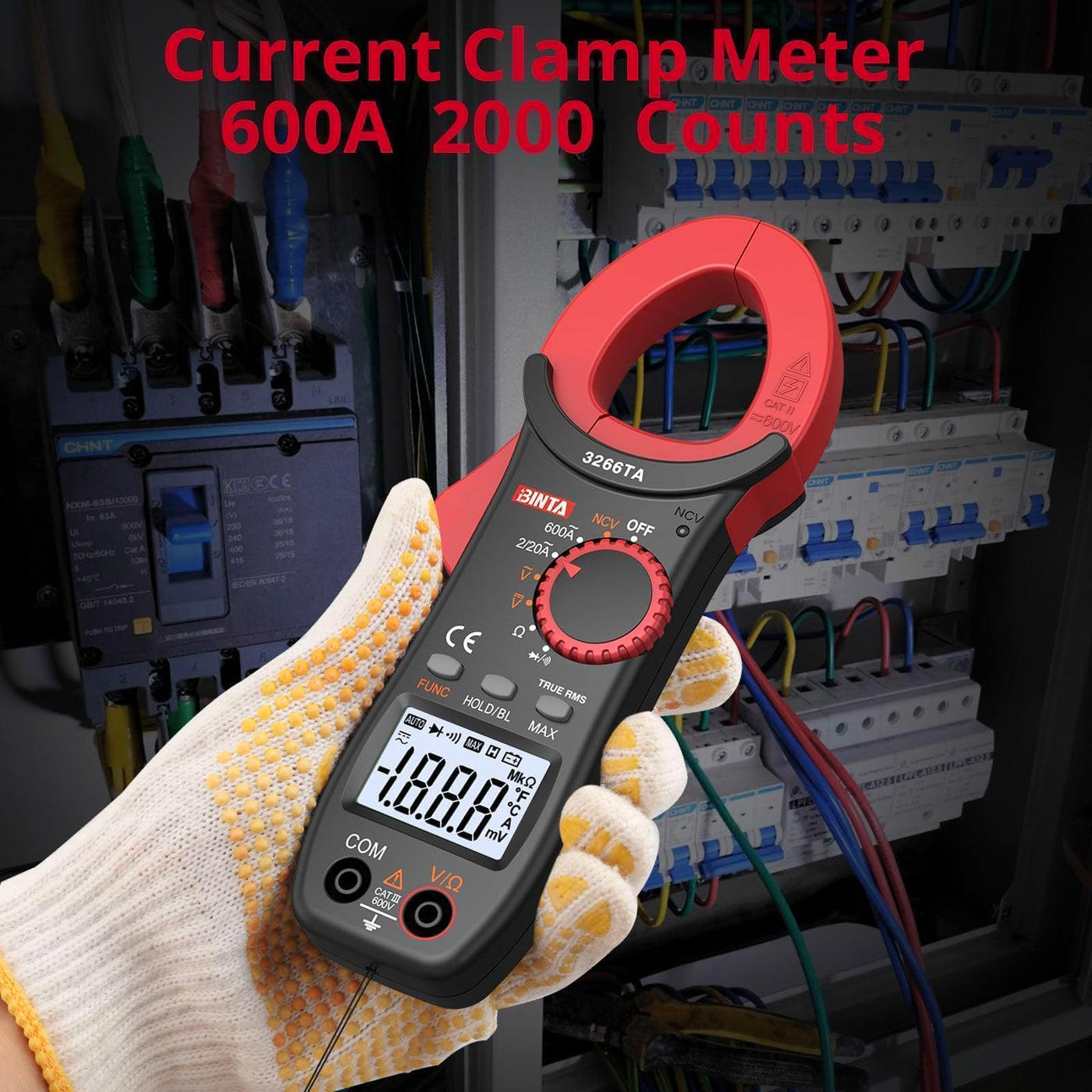 BINTA Digital Clamp Meter, 2000 Counts Multimeter with NCV Amp Auto-ranging Handheld Voltage Tester Tools Ohm Volt Measures AC Current AC/DC Voltage,Temperature Capacitance Resistance Diodes