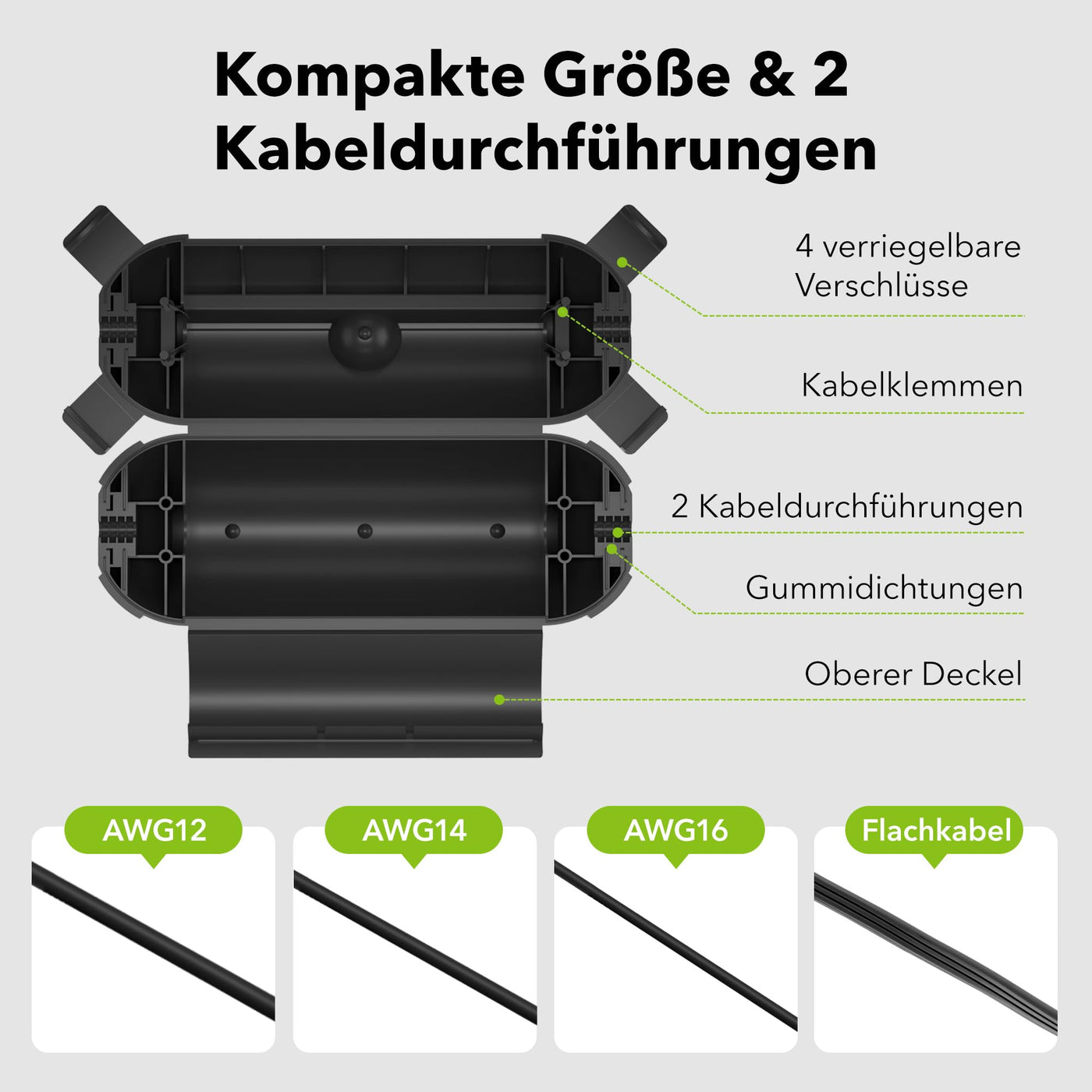 - ROBUST AND DURABLE: Made of durable PP material, this box provides protection for plugs and external connections against electrical hazards. Inside tabs ensure that the cables are fixed under tensile load and that the connector does not loosen.