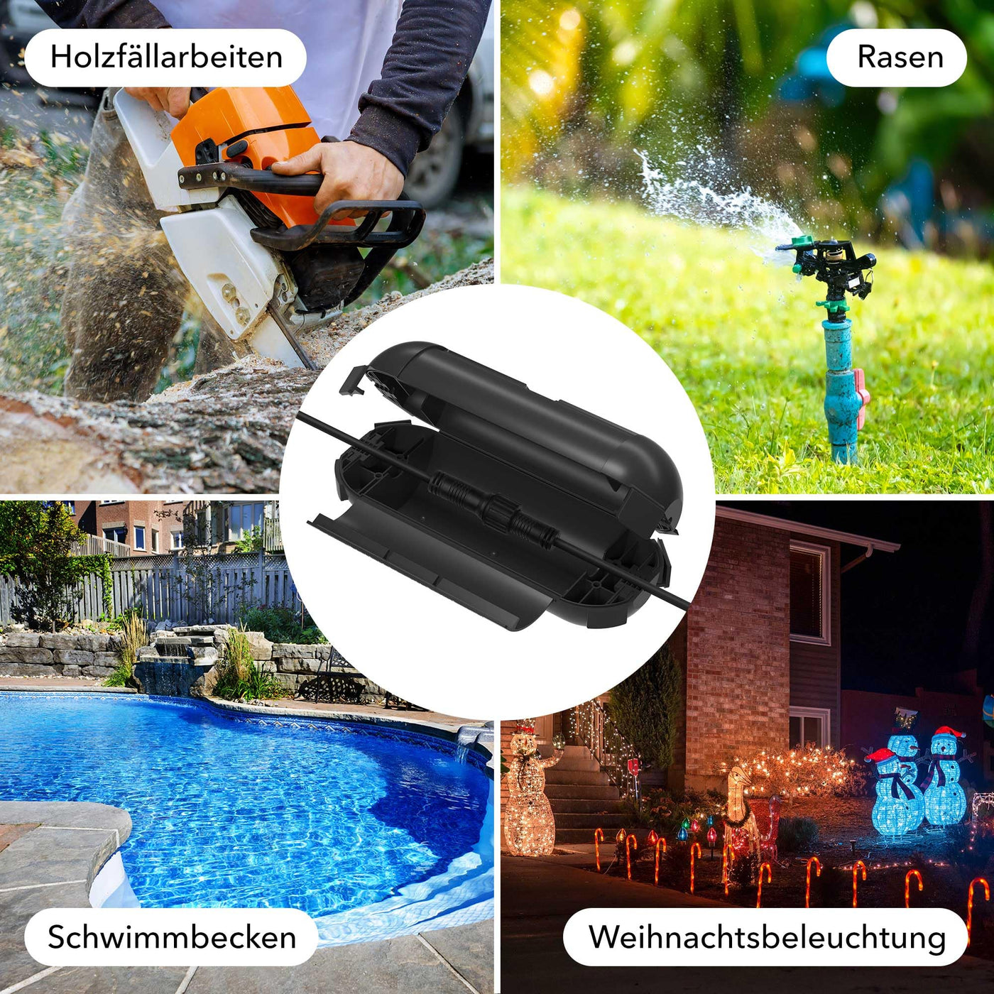 BN-LINK Outdoor IP44 Waterproof Safe Box, Garden Cable Box Waterproof for LED Chain, 20 x 8 x 7.6 cm, Protective Box for Extension Cable, Power Tool, Lawnmower (1PK Black)