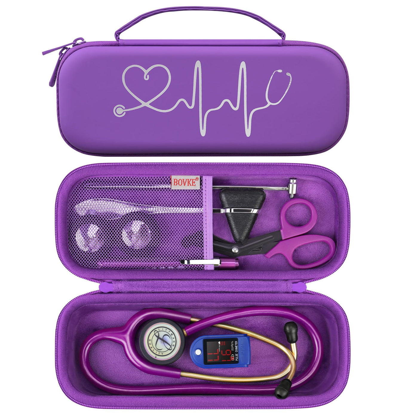 BOVKE Stethoscope Case for 3M Littmann Classic III, Lightweight II S.E, MDF Acoustica Deluxe Stethoscopes, Mesh Pocket for Nurse Supplies, Purple
