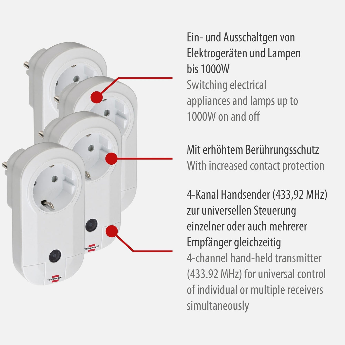 - Contents of delivery: 4 x radio receivers, 1 x hand-held transmitter, 1 x battery type CR2032 (3 V), white, best quality from Brennenstuhl.