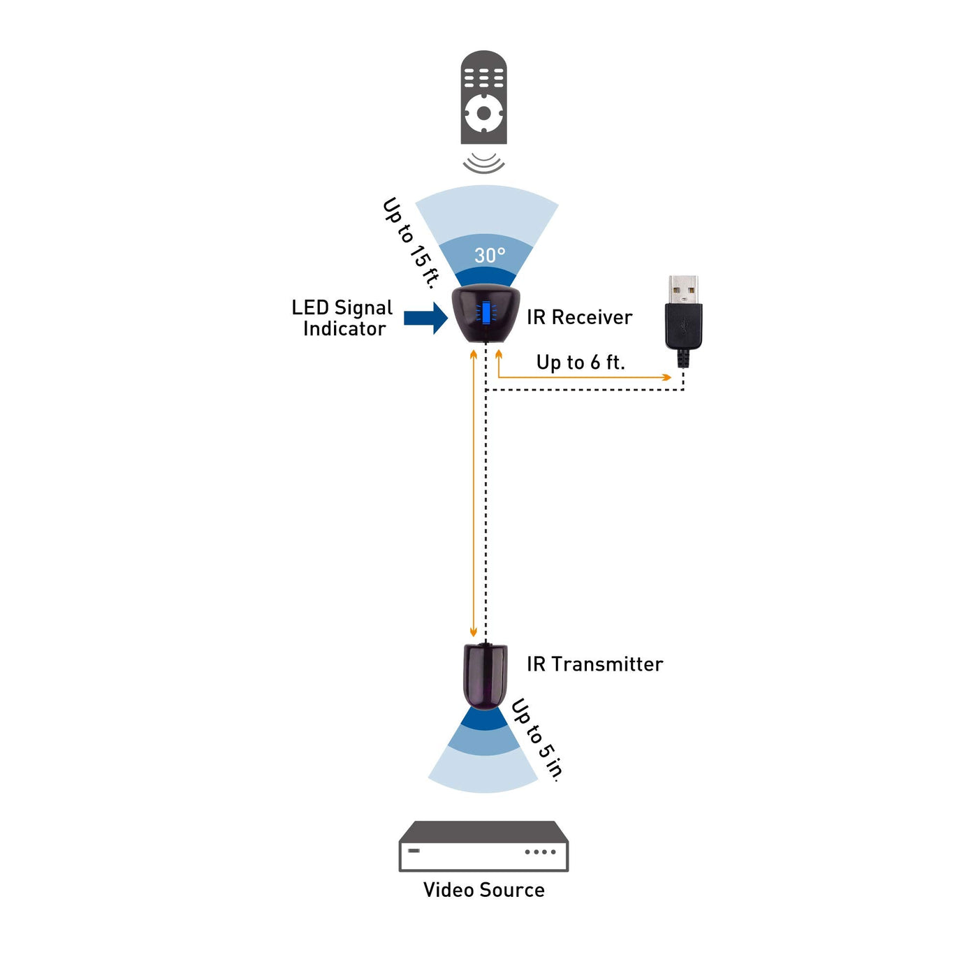 - IR remote control cable extends the signal to a video source like a Blu-ray player so it can be controlled from your TV; Blue LED in IR Receiver bulb verifies the signal transmission