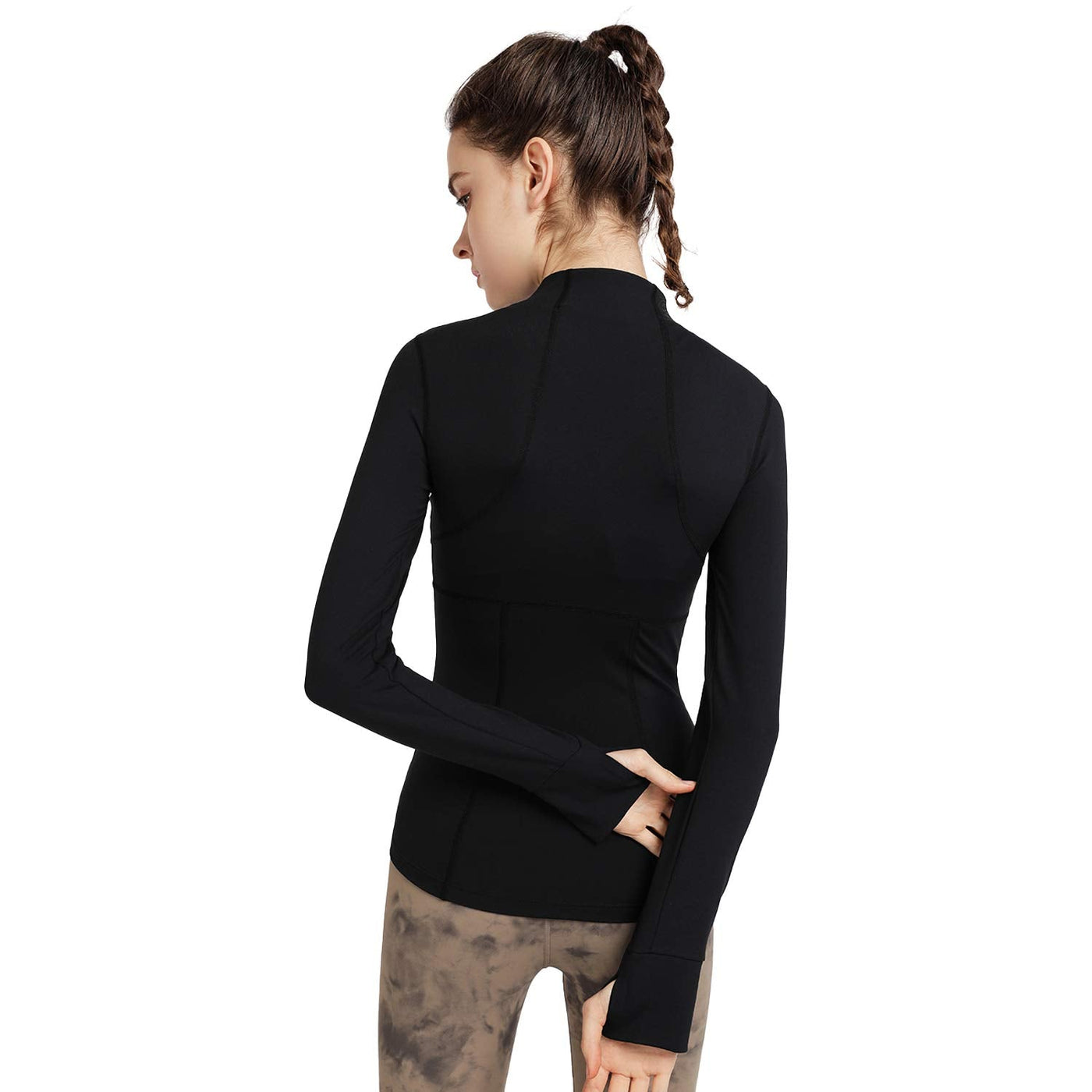 Carpesun Women's Stretchy Workout Jackets Lightweight Full Zip Running Track Jacket Black Small