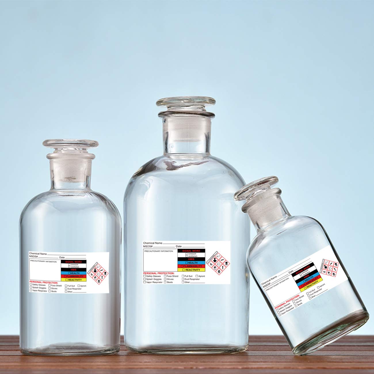 SDS Stickers 2x4 inch Chemical Identifying and Labeling Sticker,total 300pcs. Our GHS pictogram label are made of high-quality paper, and the smooth surface is suitable for writing. It is easy to stick or tear off,and will not damage the surface of your articles. Our Safety Data Sheet Stickers are highly visible, and the safe yellow,blue and red colors make the stickers easy to view and discover by users. The MSDS Stickers uses white as the background color to make the written content clearer.The 2 x 4 inch design provides more space for standard stickers for writing chemical names. You could use these to label small spray bottles of several types of cleaners and degreasers.In the past,some of the chemicals can blur the written portion,making the labeling illegible.These are protected by the clear cover and will meet the OSHA requirements for small container labeling,