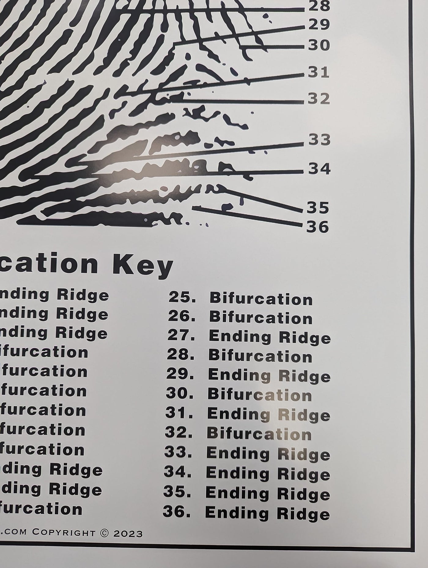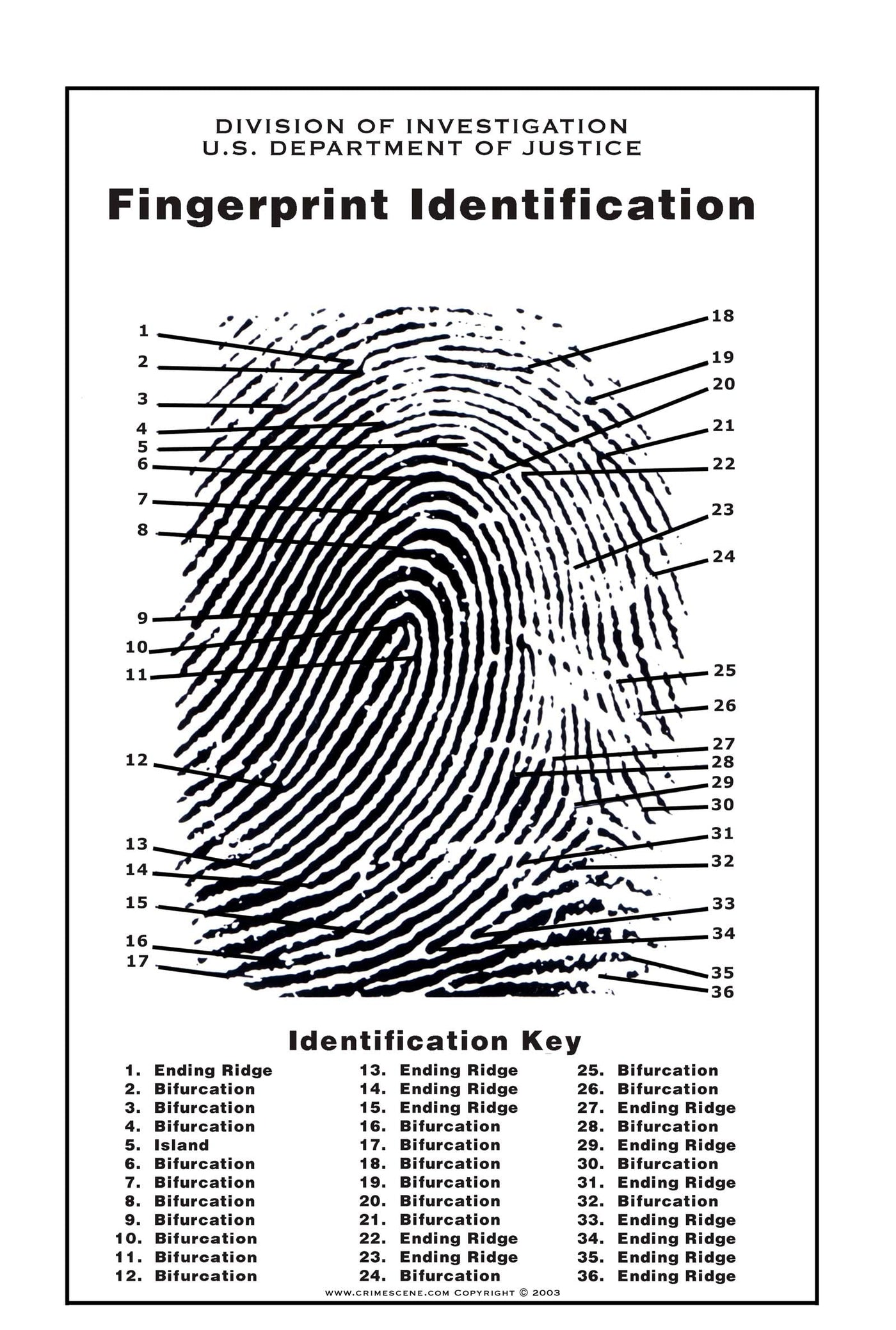 Crime Scene Fingerprint Chart, Poster Size 24" by 36"