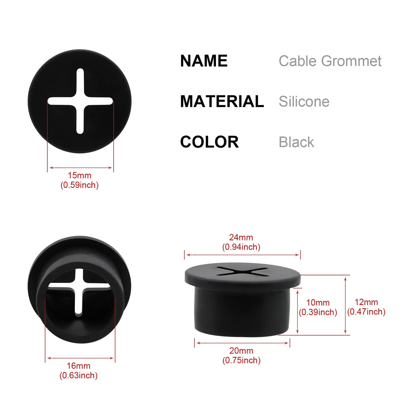 - Package ContentYou will receive 12pcs black desk grommets in the package,The grommets are made of sturdy silicone Rubber,and suitable for 3/4inch (20mm) holes.Durable and Corrosion Resistance.
