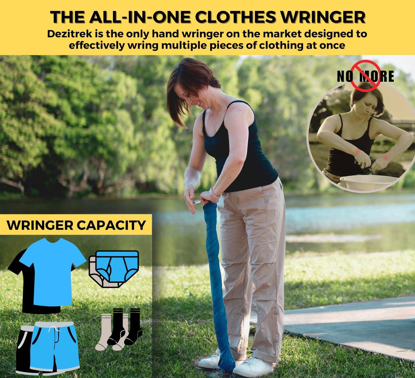 - ROBUST AND TRUSTWORTHY - Crafted by Dezitrek, this manual clothes wringer boasts remarkable durability. A dependable companion, it streamlines laundry days, enhancing efficiency. Its user-friendly design, compactness, and portability establish it as the quintessential camping and outdoor clothes wringer, setting it apart. An invaluable inclusion in travel kits and off-grid living supplies.