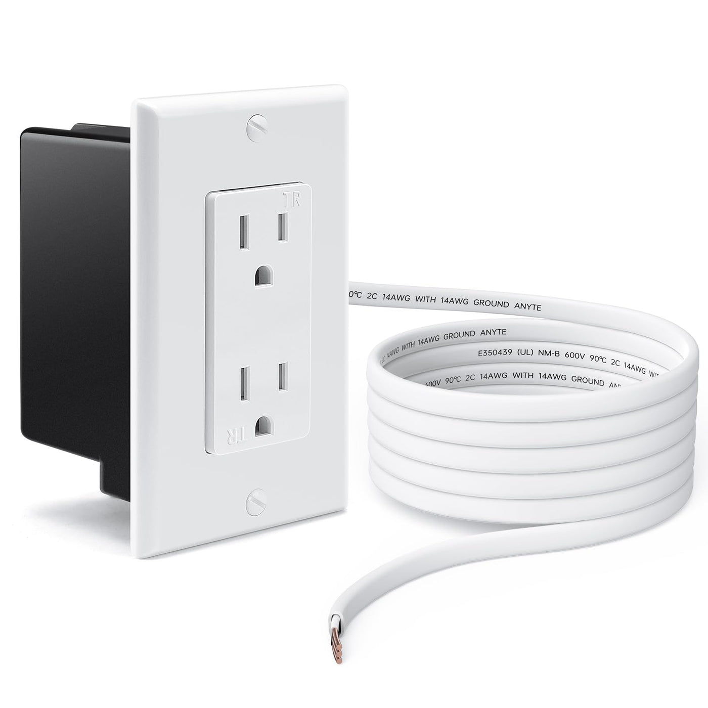- Provides All You Needs: The package of outlet relocation kit have Provides :1* Wall Plate Core( 2 AC Socket),UL List; 1* Wall Plate Cover; 1 * Recessed Cable Plate; 1* 14AWG 2.4m UL List Copper Wire Hard Wire(Copper Wire is bared for easily connection with other plate), 2* Installation screws; 3* Electrical Lever Wire Connectors. Now, go ahead to extend your old plate!