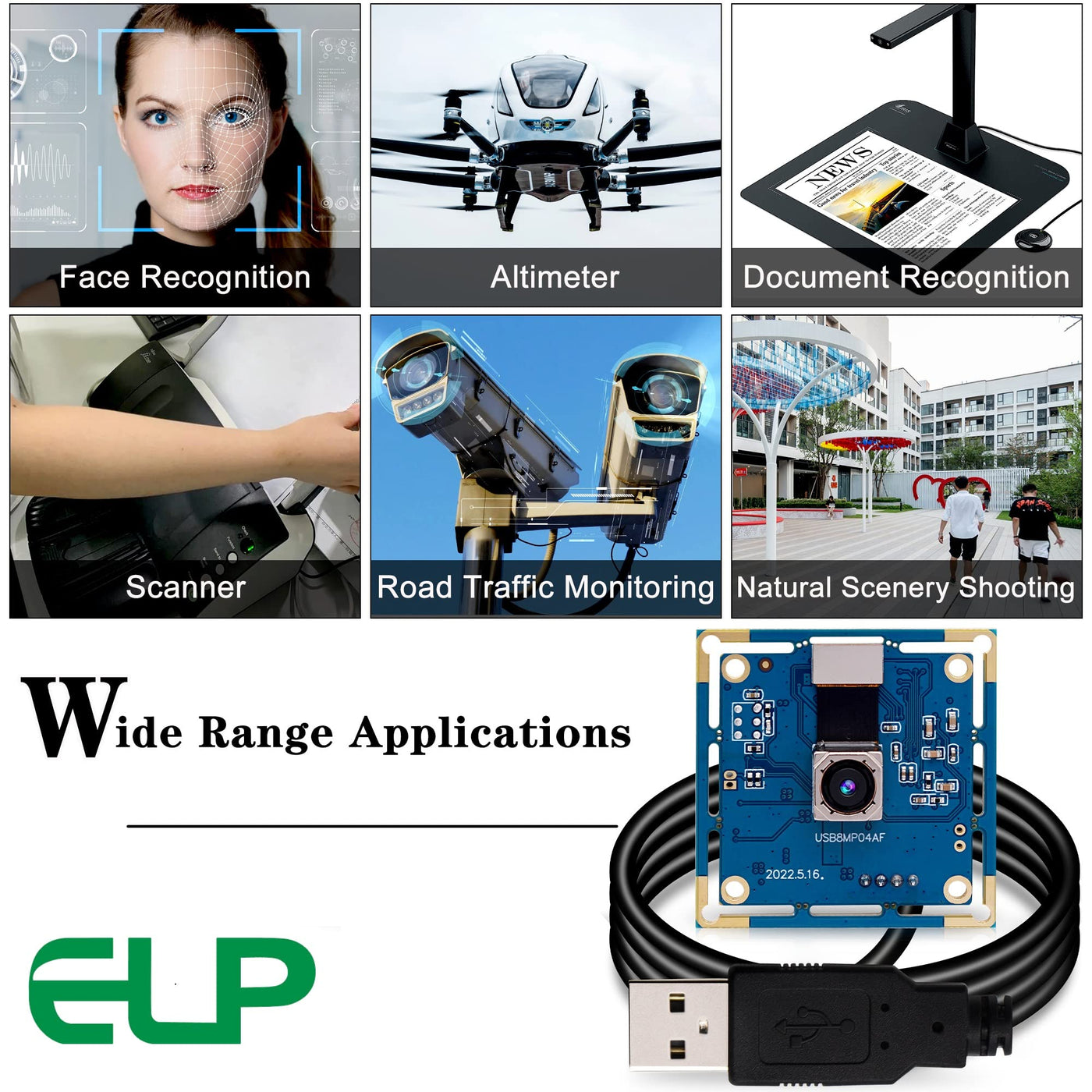 - Applications: ELP 8mp autofocus usb camera is highly recommended for a home surveillance system, monitoring 3D Printer, object recognition and tracking, Bar code QR code identification scan, or other machine vision applications which demand high resolution.