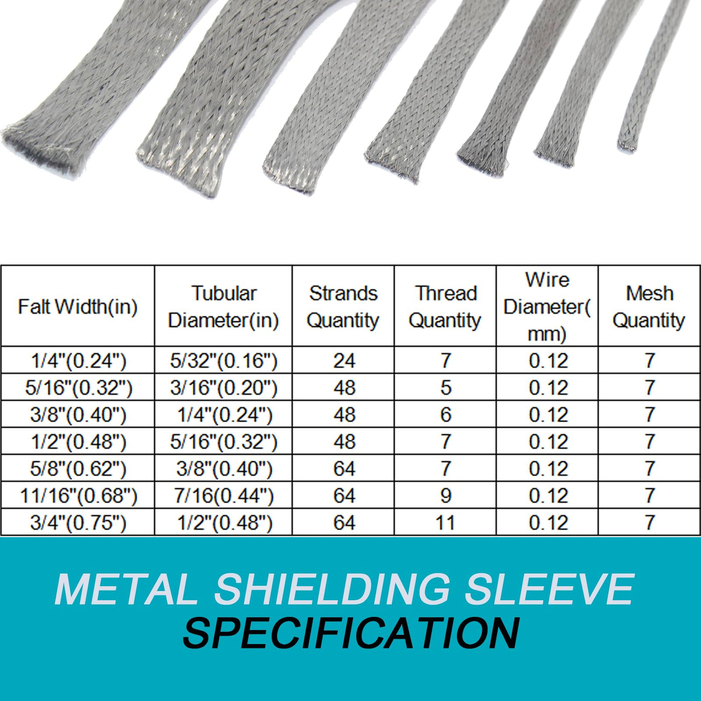 - Metal Braid Sleeve - Cable braided sleeve is woven from 0.12mm oxygen free tin plated copper wire. Metal Wire Loom is extremely flexible,strong,expandable.Tinned Copper wire sleeve has better oxidation than pure copper.Flat Width:5/16",Tubular/Round Inner Diameter:3/16",Length:16Feet