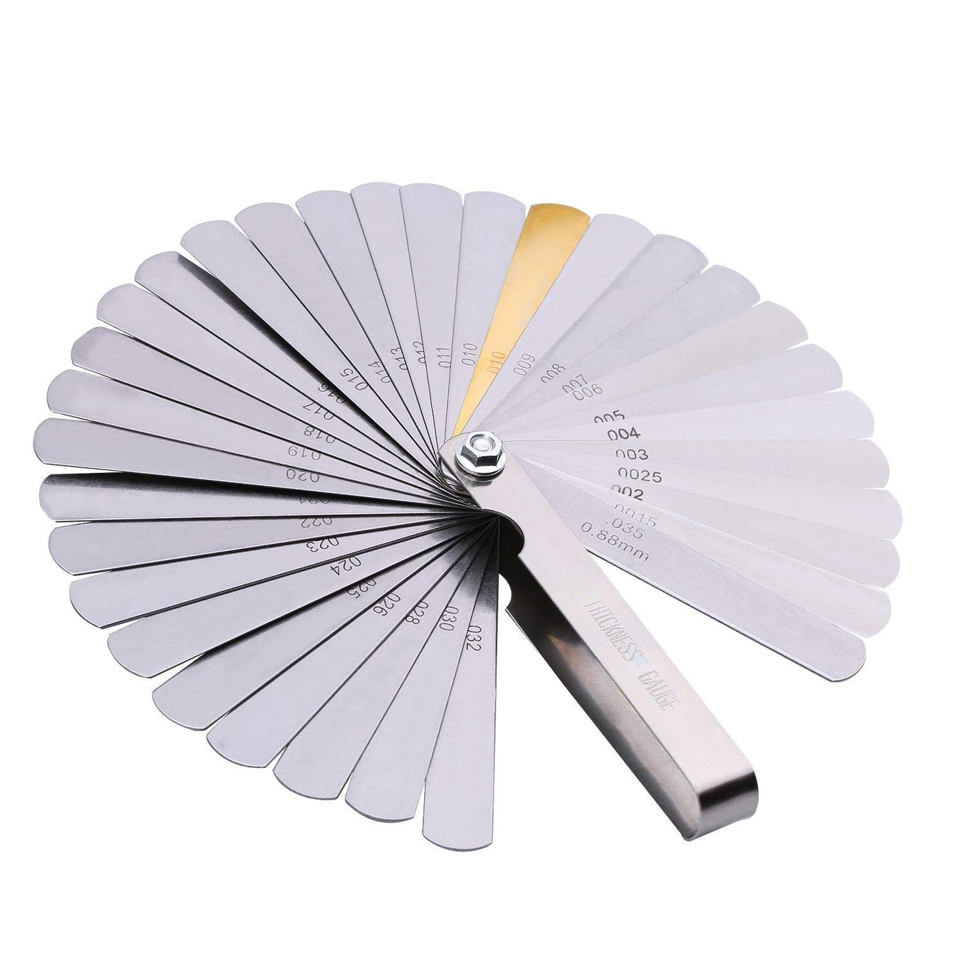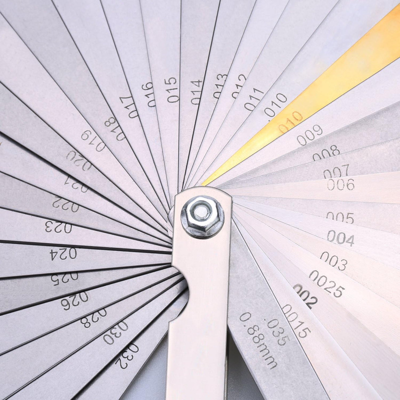 - Precision feeler gauge set: made of stainless steel, each measuring probe gauge has 32 sheets thickness; foldable feeler gauge, easy and convenient to take and store.