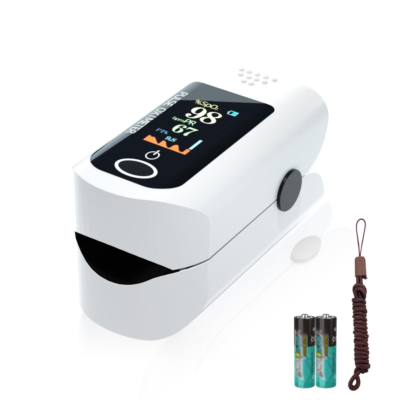 - [Easy to Use] The pulse oximeter is small in size, light in weight, comes with a lanyard, and is convenient to carry. One-button design ensures easy operation and suitable for daily use at any time. The fingertip pulse oximeter is intended for sports and aviation use only.