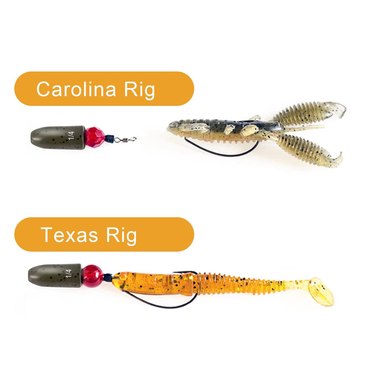 - 2 Colors Available - We offer the two most popular colors for you to choose for different fishing condition: green pumpkin and anodized black. The black one is processed with a matte-black oxidation, won t crack, chip or peel for a lifetime. Widely used on Carolina Rigs and Texas Rigs.