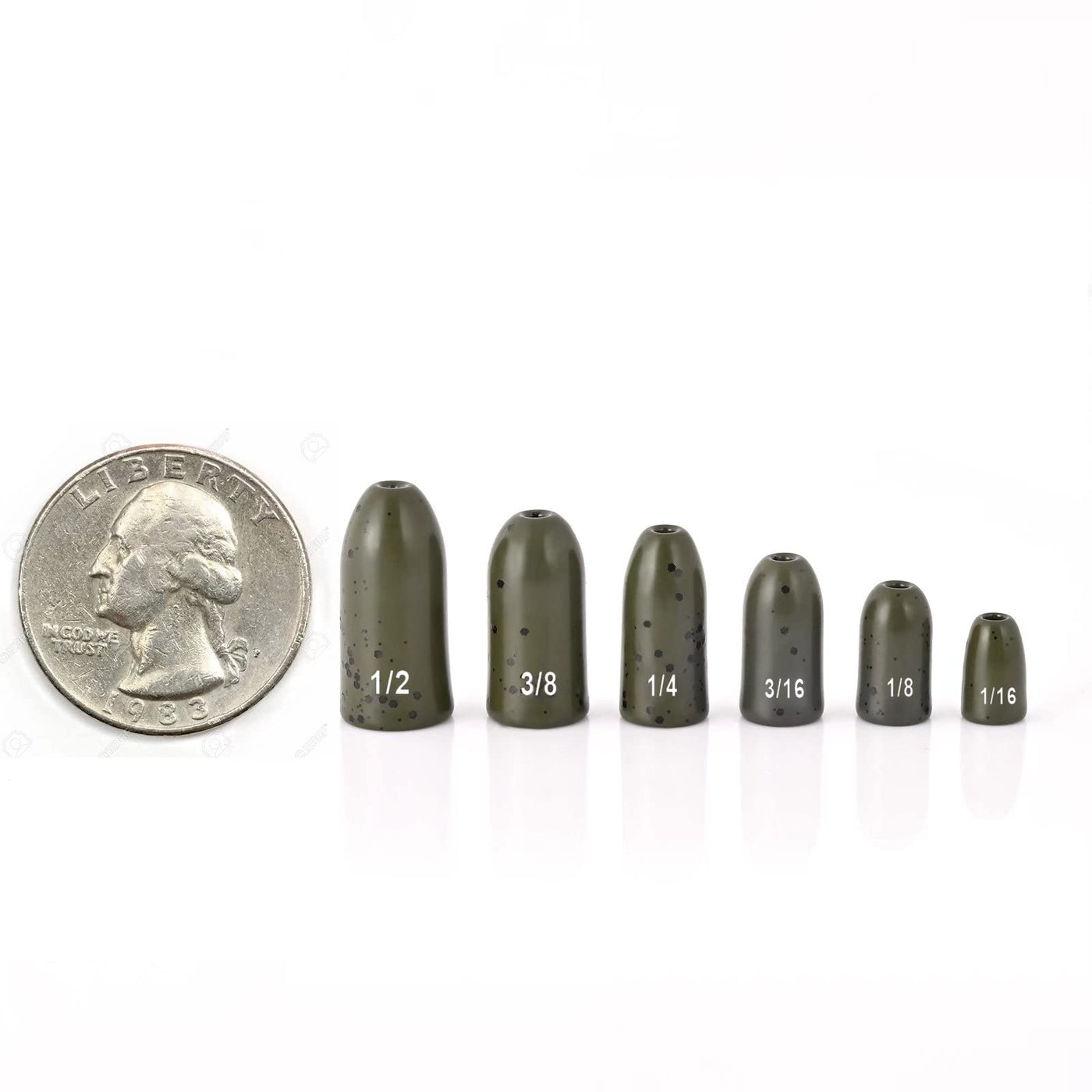 Fishfun 12 Pack Tungsten Bullet Fishing Weights, Insert Free Worm Sinkers, 1/8 3/16 1/4 3/8 1/2 oz Green Pumpkin 1/4 oz