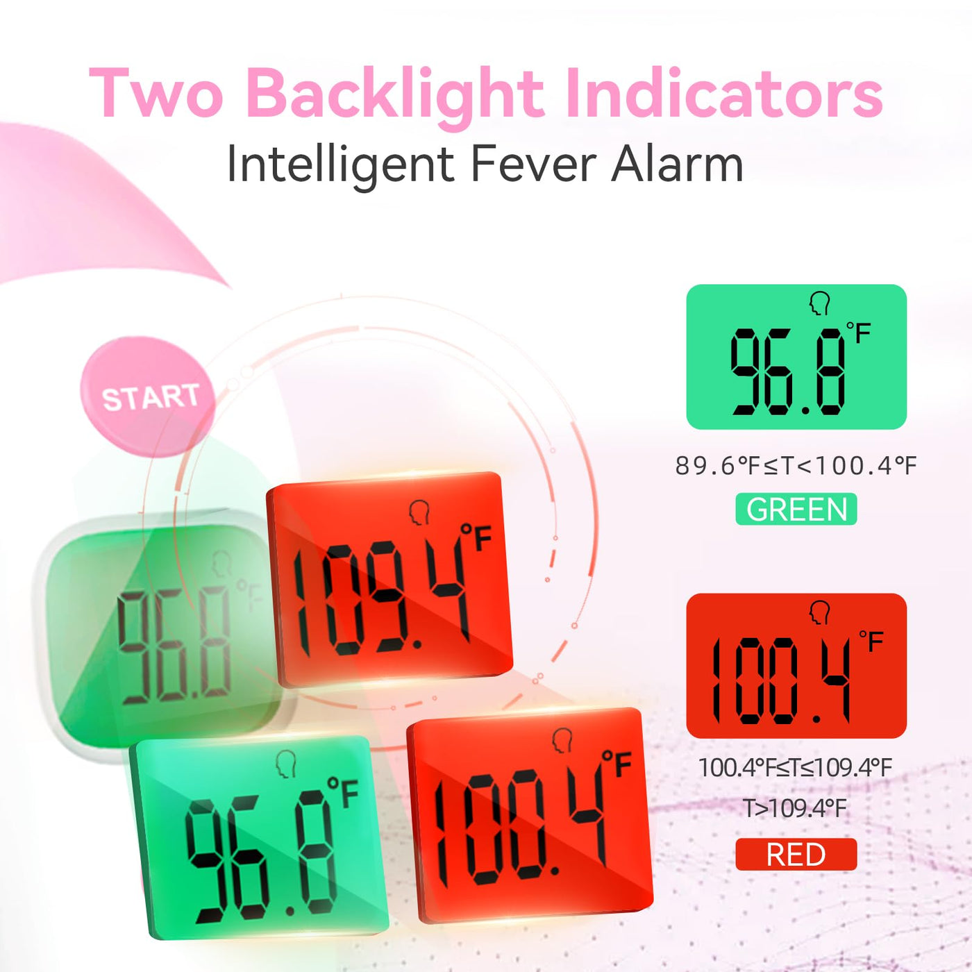 - Fever Alarm: The touchless fever thermometer features a back-lit, oversized display for easy reading; screen turns red to indicate a fever when the temperature is between 38-42.9 C