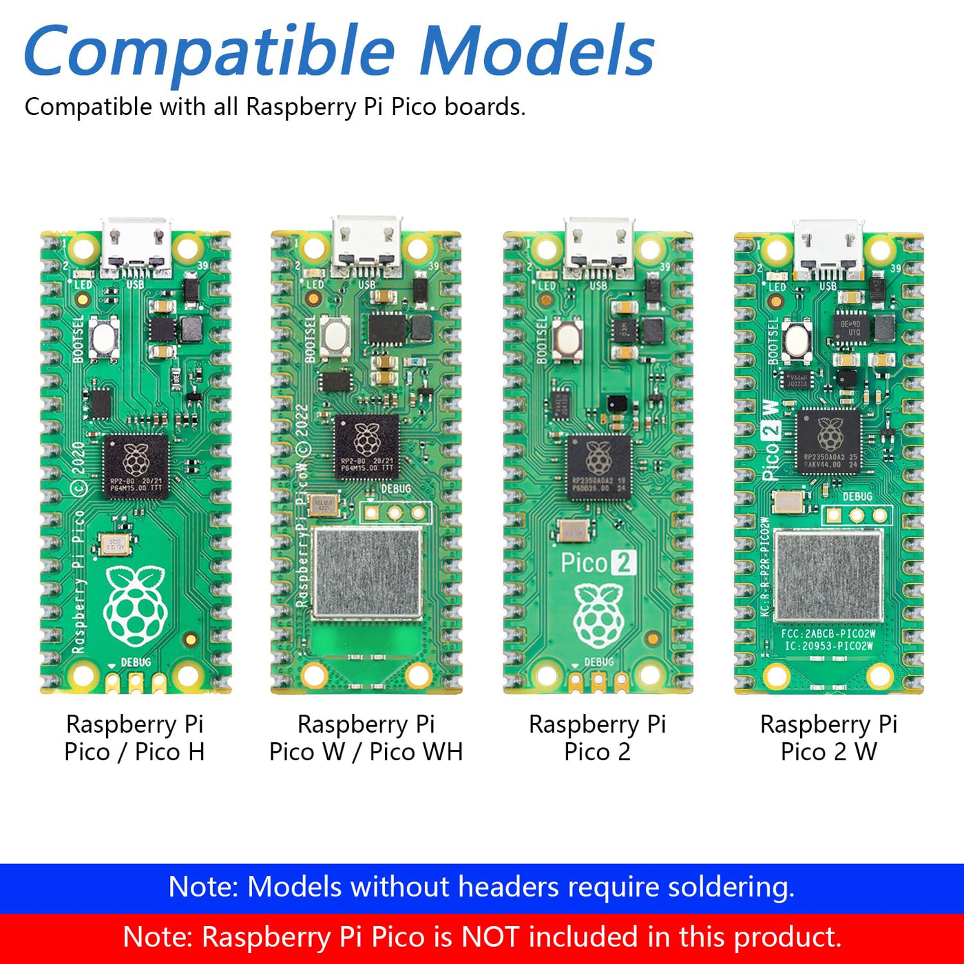 - Compatible Models: Raspberry Pi Pico / Pico H / Pico W / Pico WH / Pico 2 / Pico 2 W (NOT included in this kit)