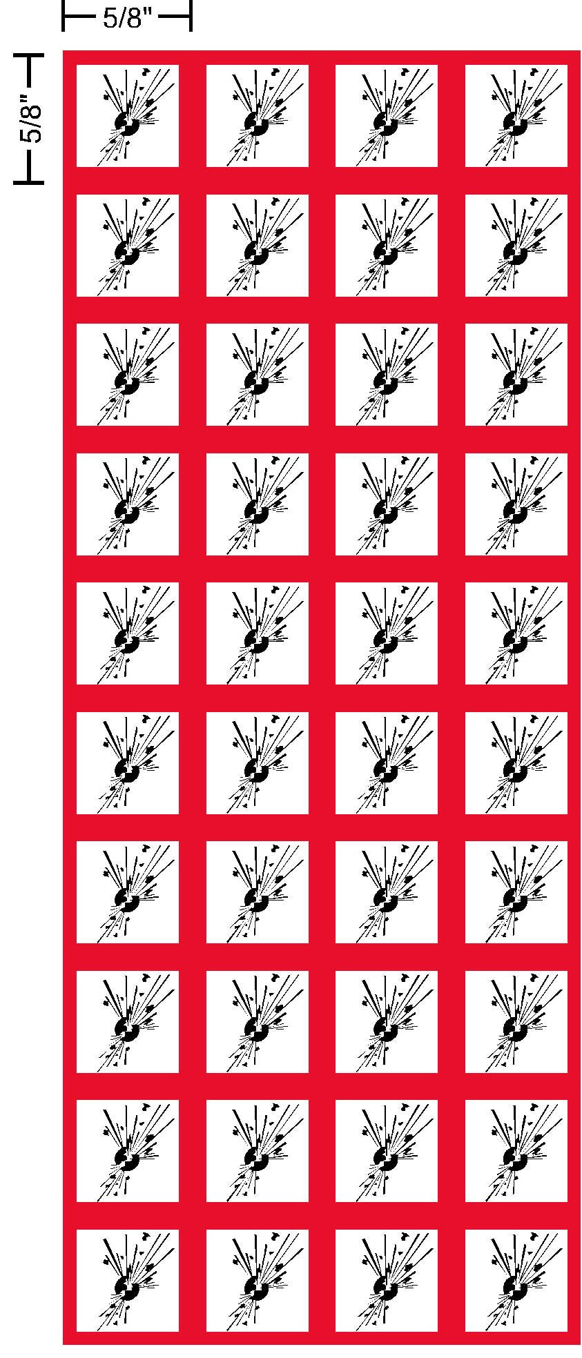 GHS Explosive, Exploding Hazard, Pictogram, 5/8 inch, .625 inch Sides, Decal, Label, kit OSHA Compliant, Vinyl Sticker, Sheet, 40 of The Decals per Sheet