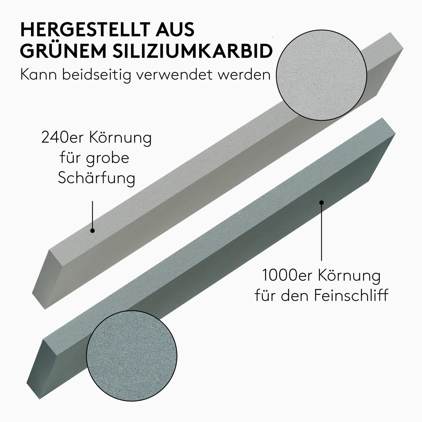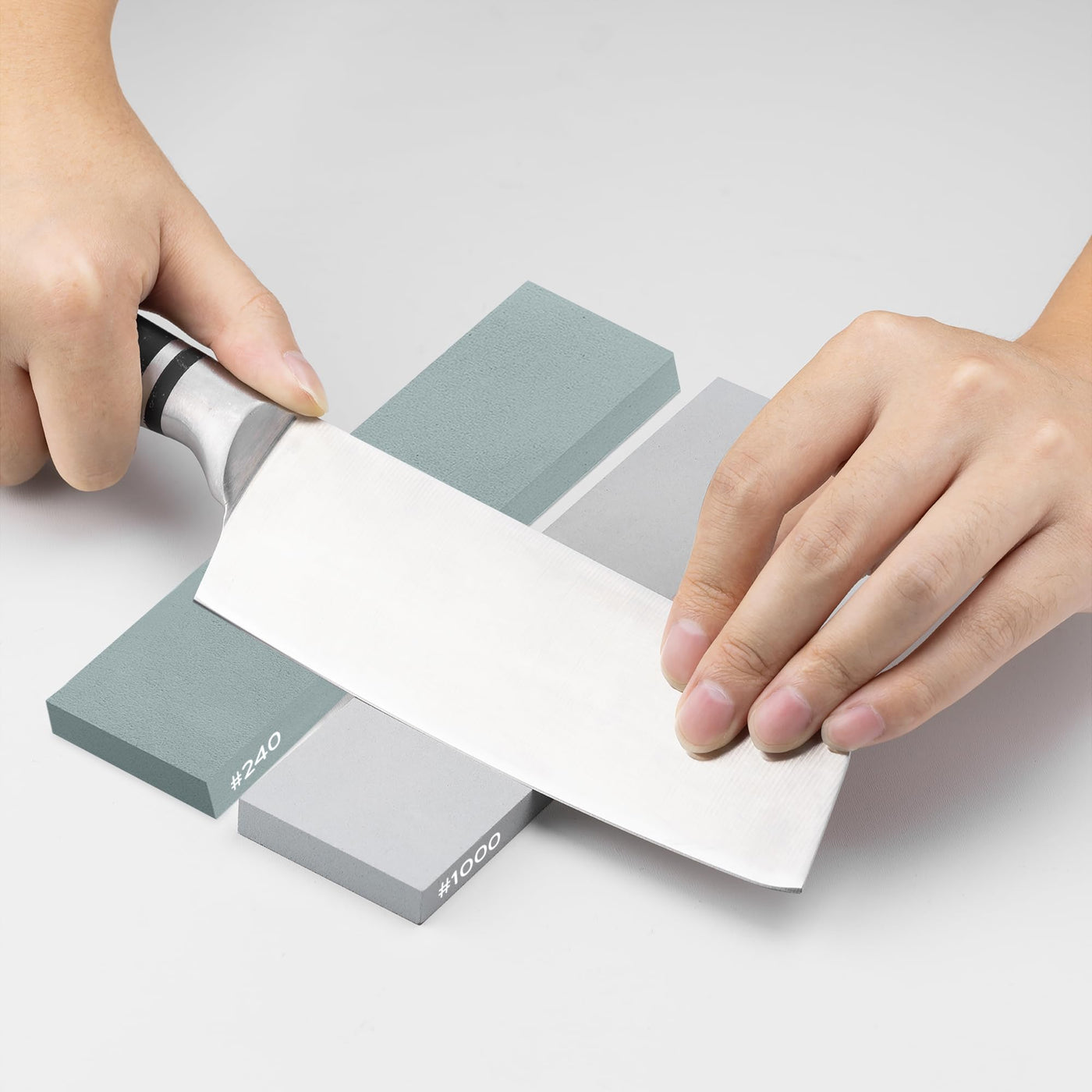 - EFFORTLESS SHARPENING: Sharpen your cutting tools, blades and edges effortlessly with our set of two whetstones. Start with the 240 grit stone for coarse sharpening and finish with the 1000 grit stone for a fine cutting edge.