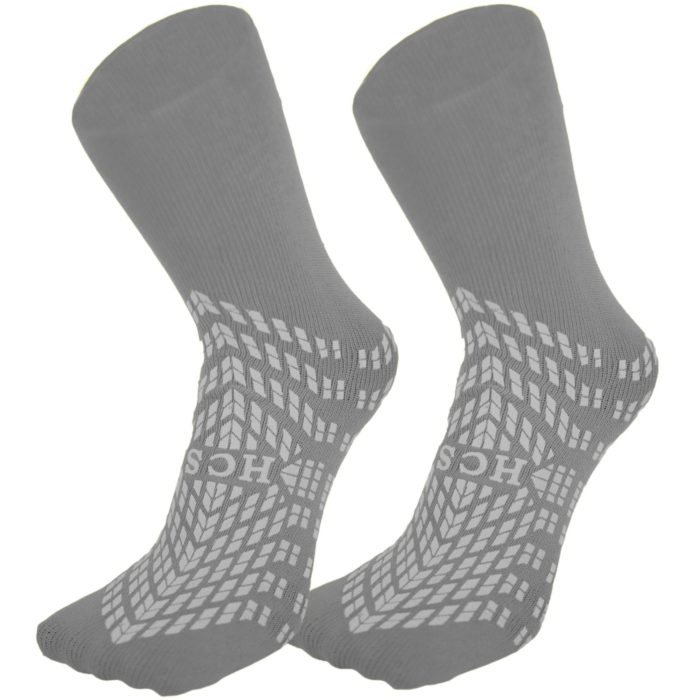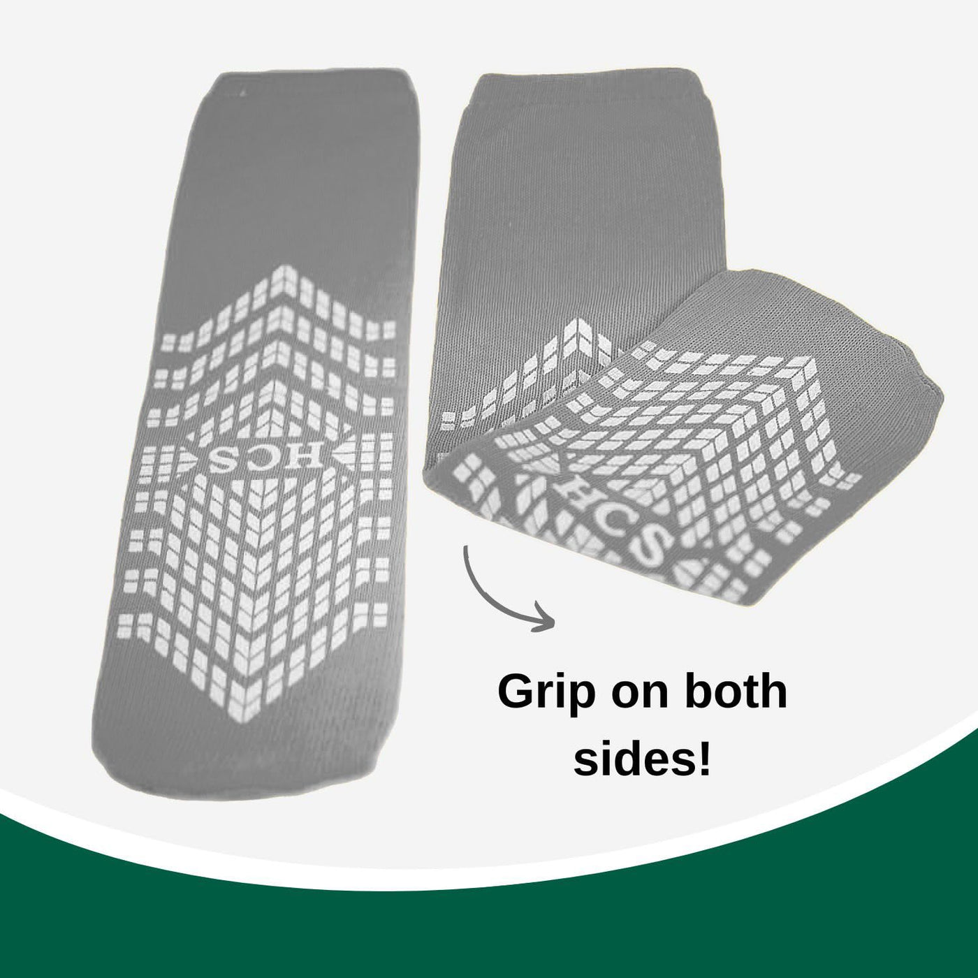 HCS Hospital Socks (6 Pairs) - Non Slip Socks for Elderly, Fall Risk Patient Slippers - Non Skid Socks for Seniors - Hospital Socks with Grips for Women & Men Universal Grey