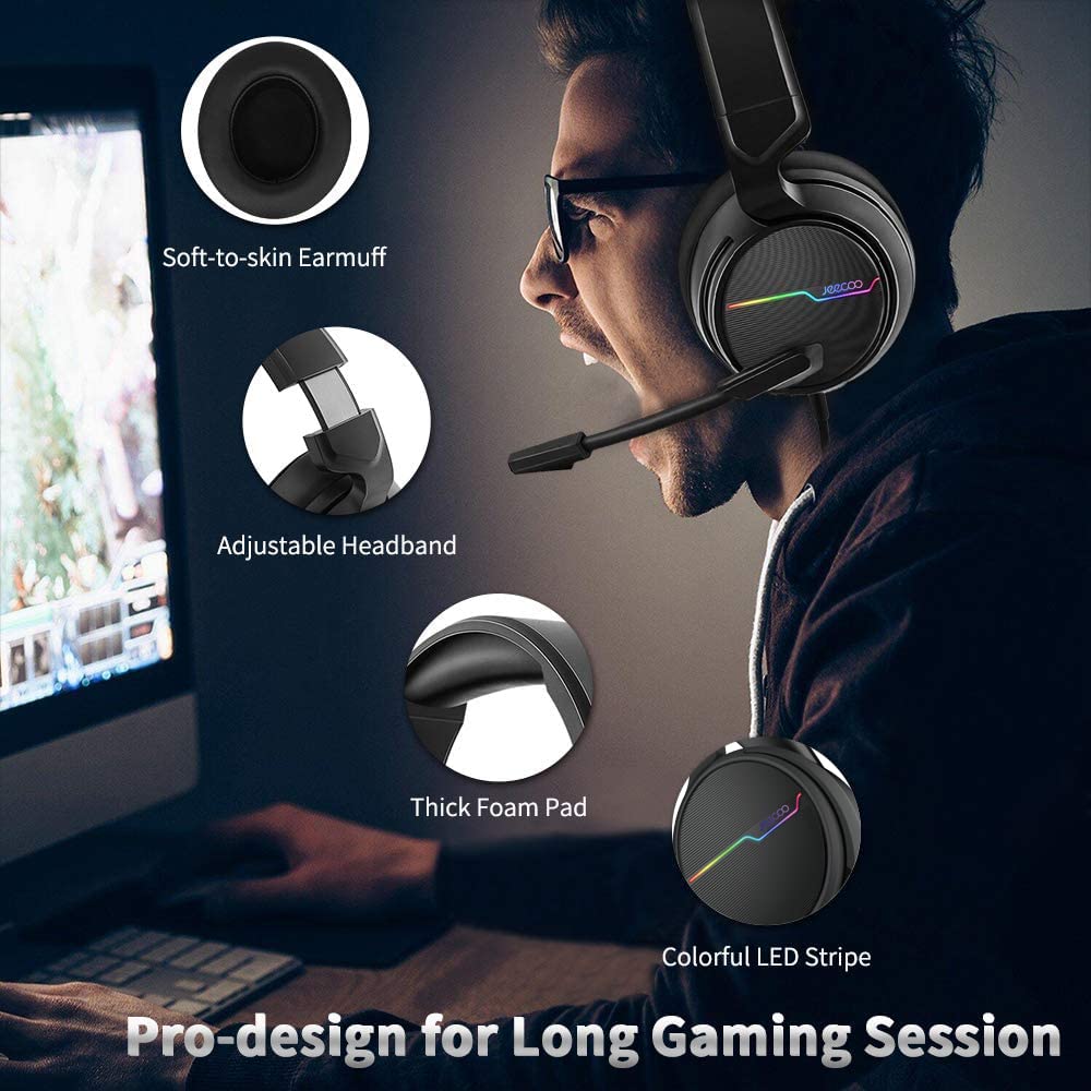- [High Quality Building]: This pc gaming headset has sturdy construction, adjustable metal headband, flexible microphone, thick memory foam cushion pads, big & soft earmuff, tangle-free cord & decent package. Exclusively made for pro gamers, you can enjoy a long & comfortable gaming session.