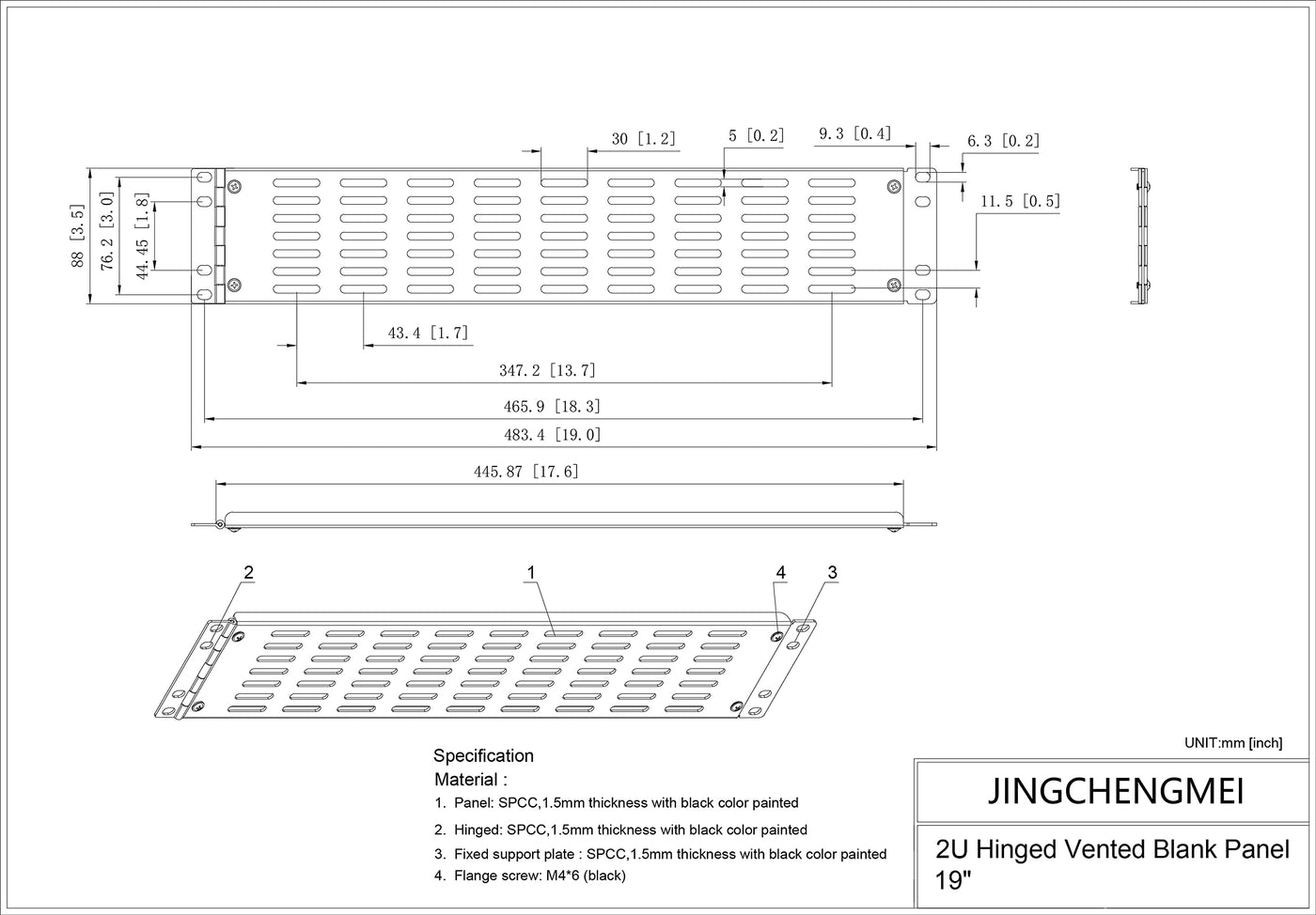 Jingchengmei 2U Hinged Blank Panel - Slot Vented Server Rack Panel for 19-Inch Network Cabinet or Server Rack Enclosure Black (2UVBPHN, Black)