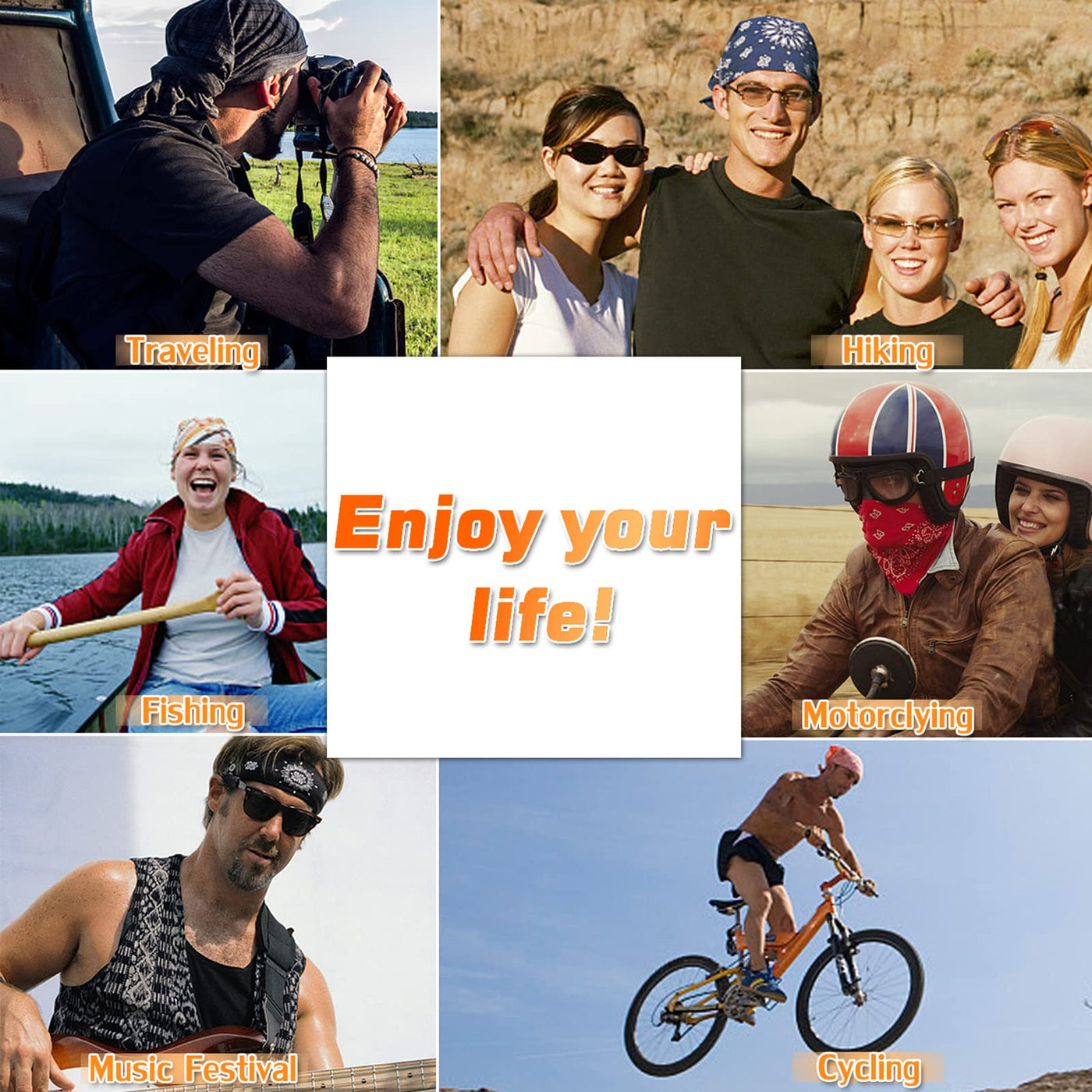- SUN PROTECTION AND DUST PROOF: When going out for running, cycling or motorcycling, wearing it as a face mask, headband, scarf bandanna or neck gaiter can protect your face, head, neck and ears from being over exposed to the harmful rays of the sun and keep your nose, mouth clean from breathing dust. You also can keep one in your hair to prevent mud build up.
